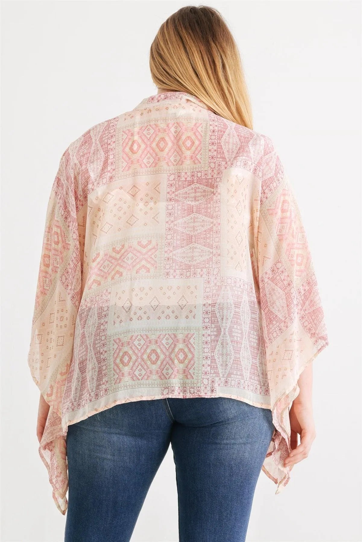 🖤 Item Features: Berry, chiffon, tribal print, open front, batwing sleeves, relaxed fit, unlined, casual, cute, cool, stylish.