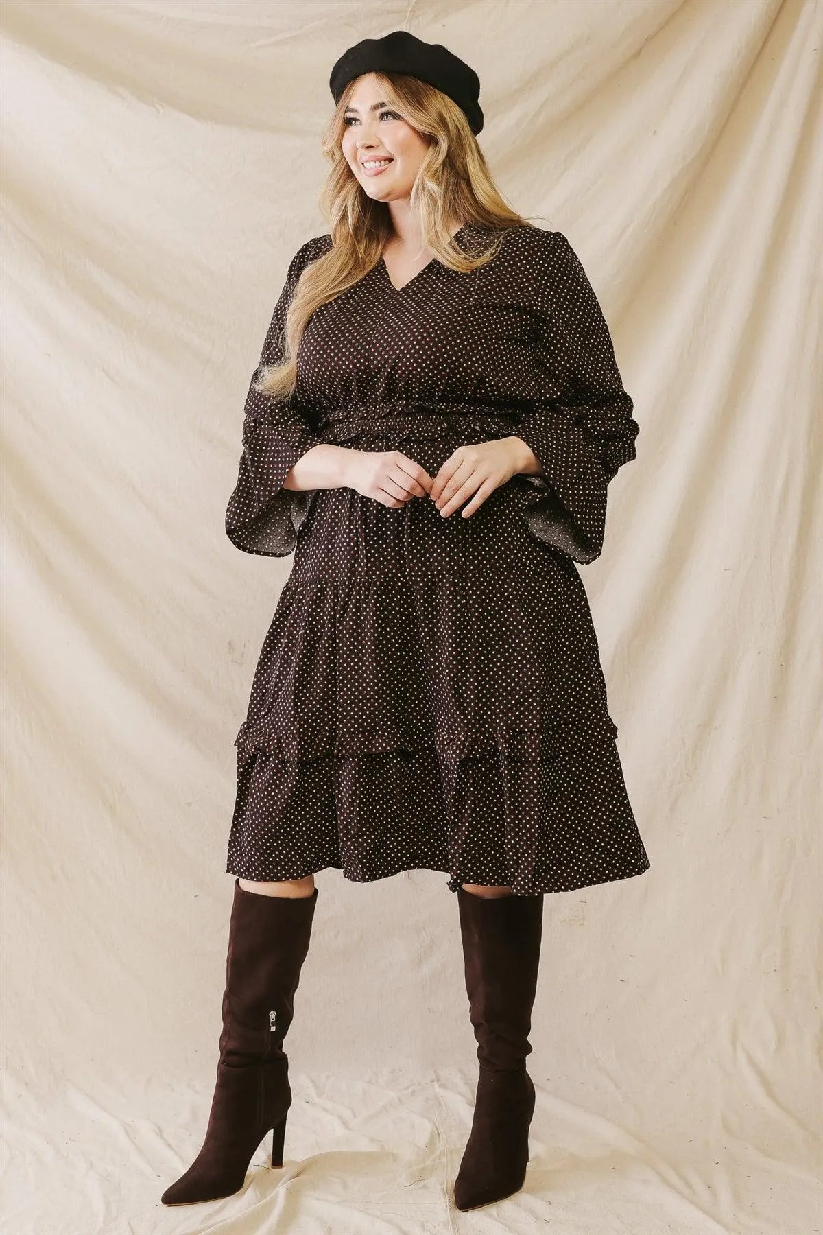 Plus Size Western Plaid Balloon Sleeves Boutique Fall Fashion DressVendor:Jade by Jane