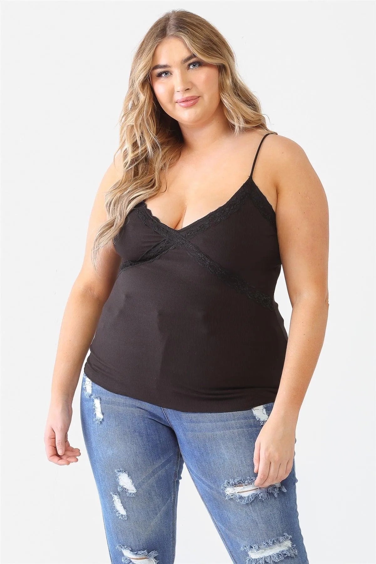 🖤 Serve up some serious style with this Junior Plus Black Ribbed Lace Sleeveless Strap Lettuce Hem Top. Combining a ribbed texture with playful lettuce hem and lace details, this top is perfect for any occasion. Whether you dress it up or down, you'll be turning heads with this unique and versatile piece!