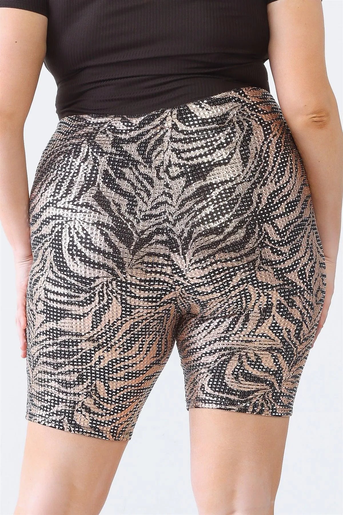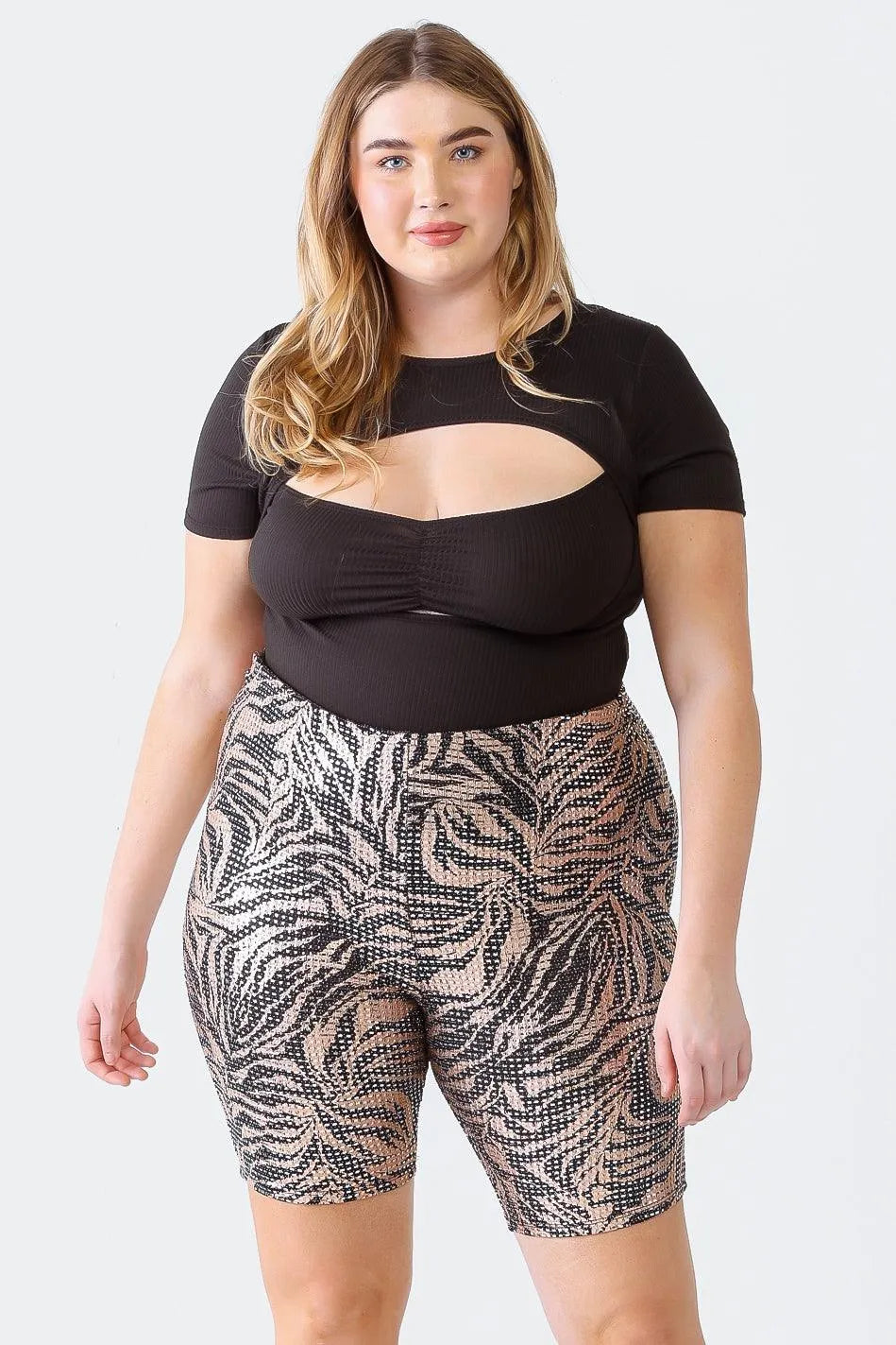 Junior Plus Black & Rose Printed Sequin High Waist Shorts /1-1-1