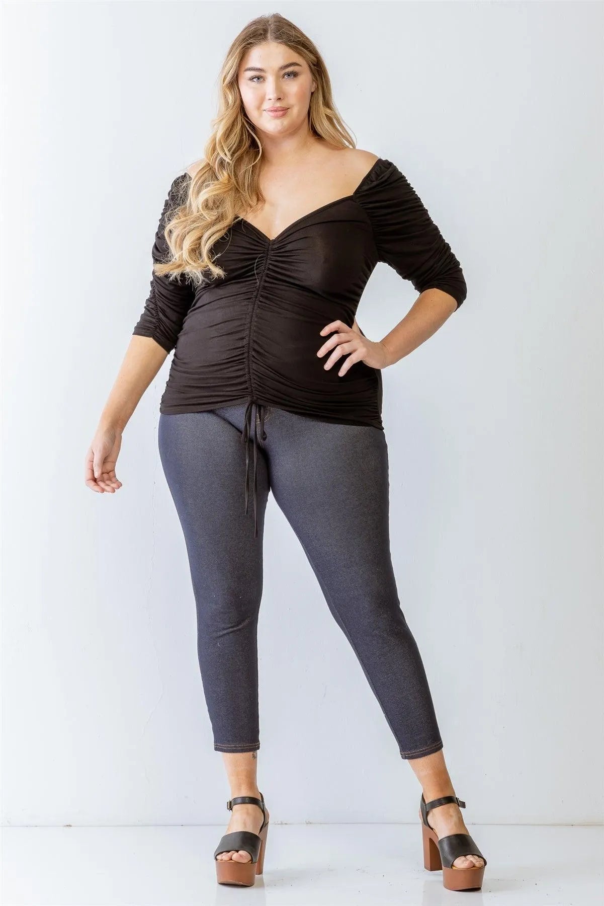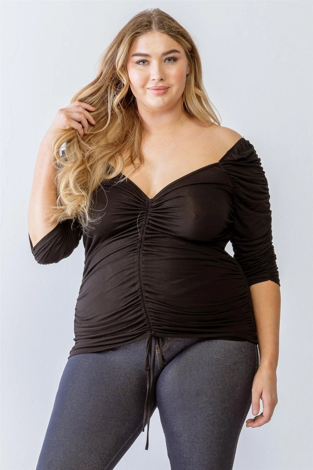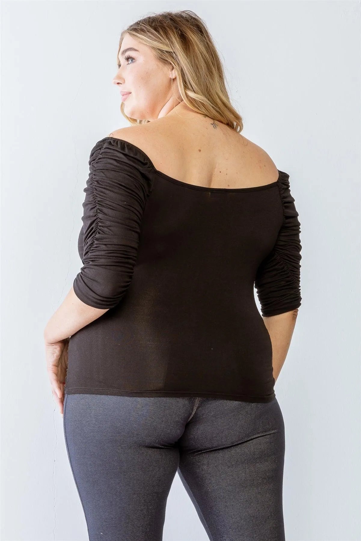 Junior Plus Black Ruched Midi Sleeve Top /1-1-1