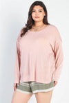 Plus Size Mineral Acid Washed Long Sleeve Crew Neck Relaxed Fit TopVendor:New In