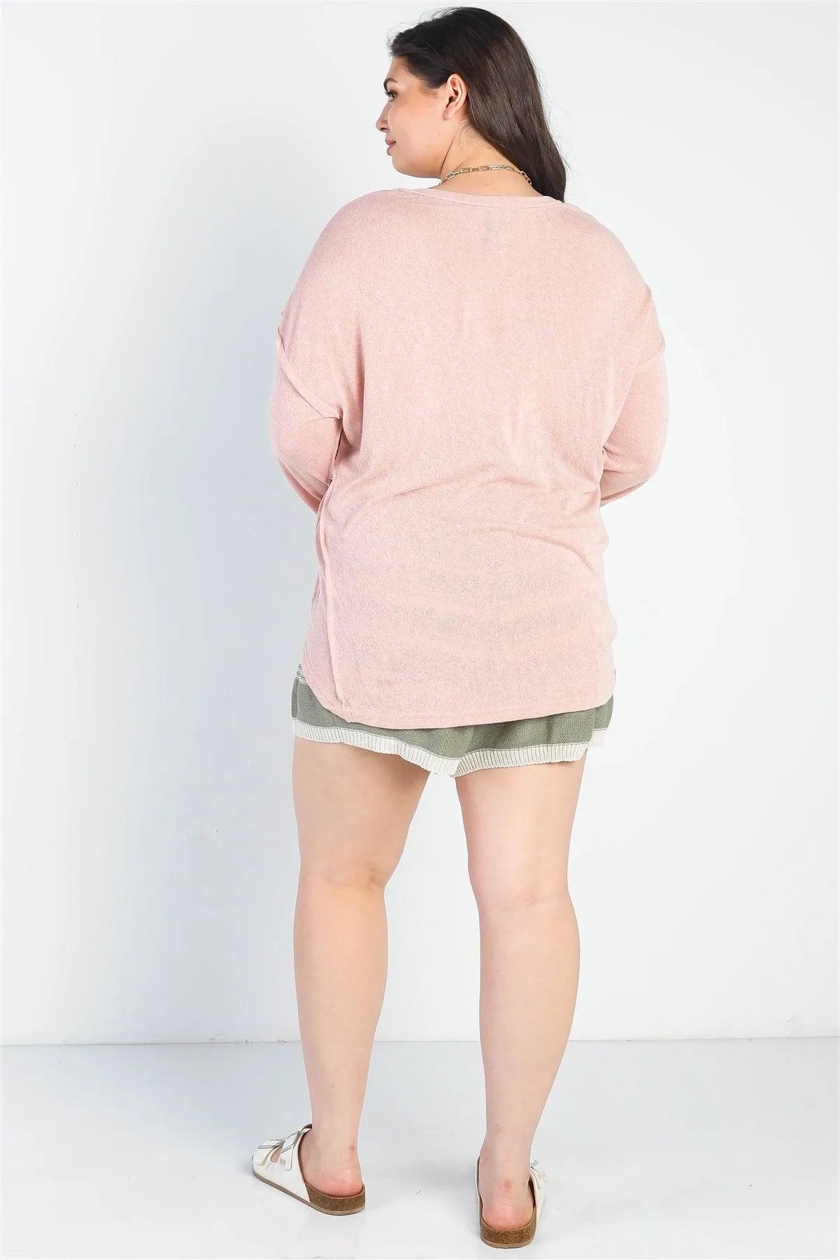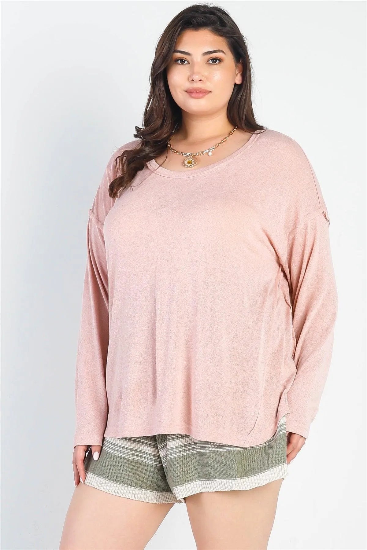 Junior Plus Blush Trim Detail Long Sleeve Top /3-2-1