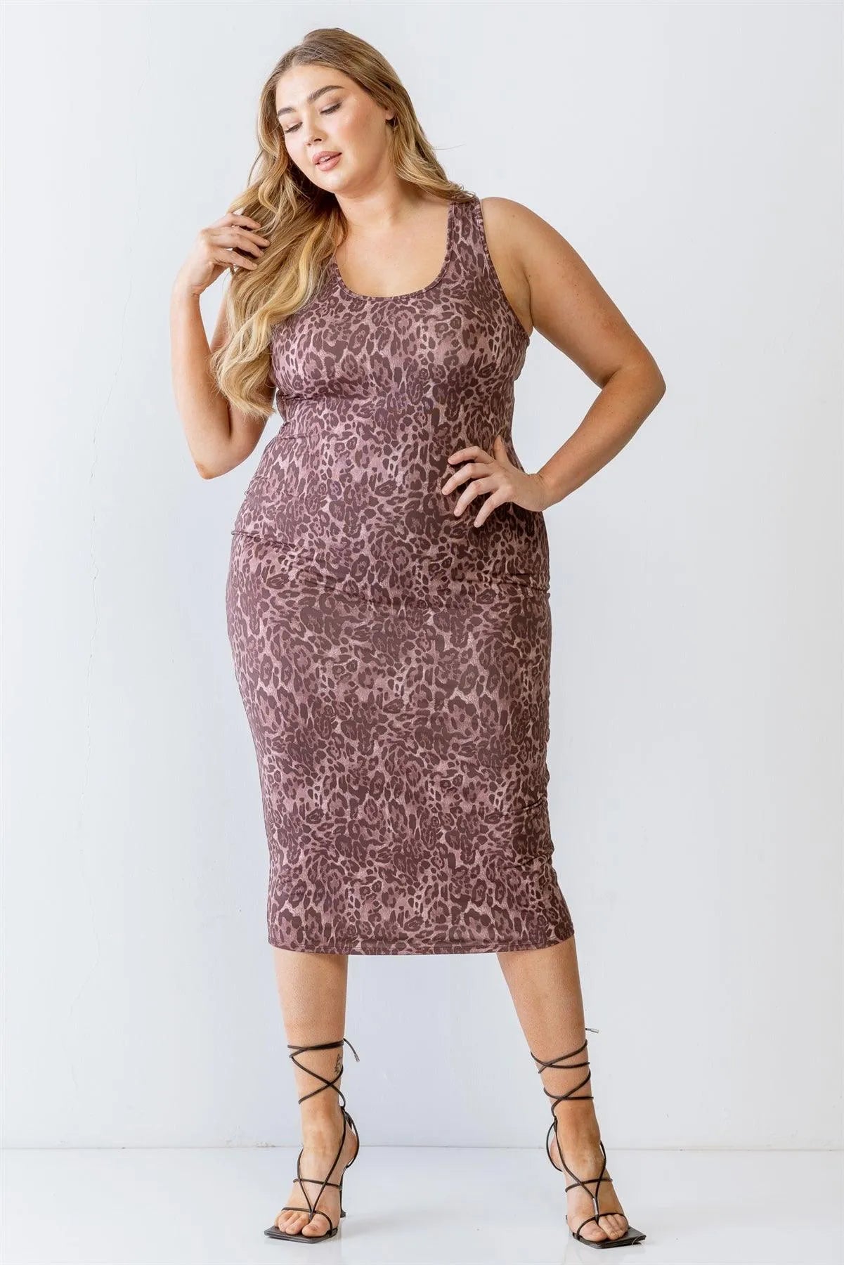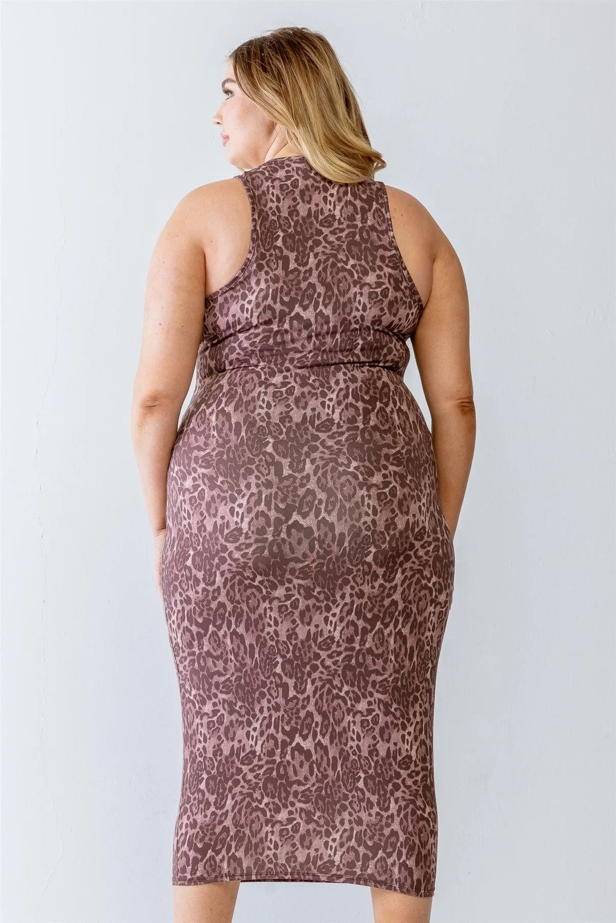 Junior Plus Brown Leopard Print Sleeveless Midi Dress /2-2-2