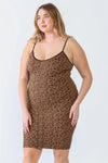 Junior Plus Brown Leopard Print Ribbed Sleeveless Strappy Tight Mini Dress /2-3