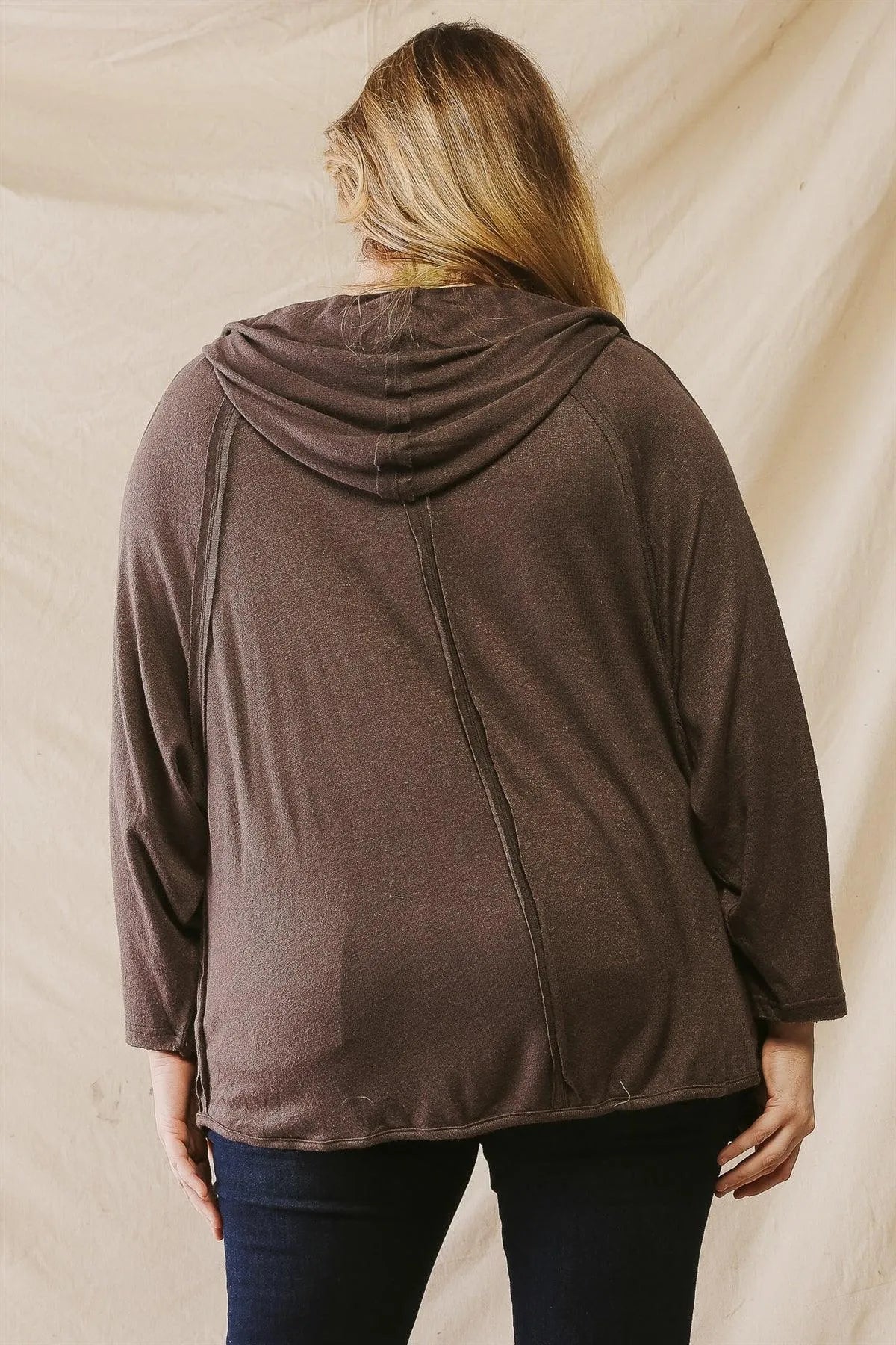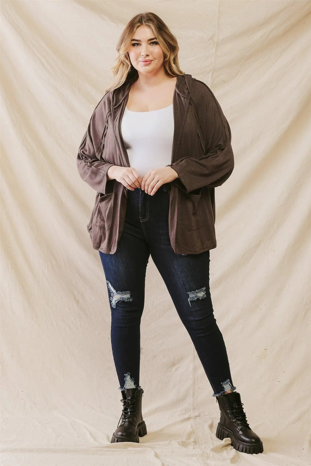 Plus Size Inside-Out Hooded Open Front Cardigan /3-2-1