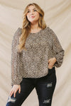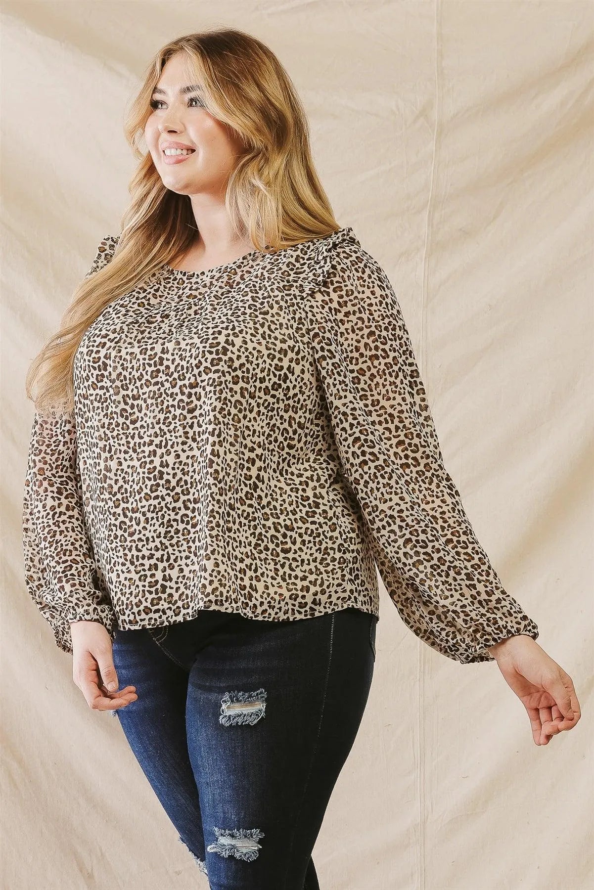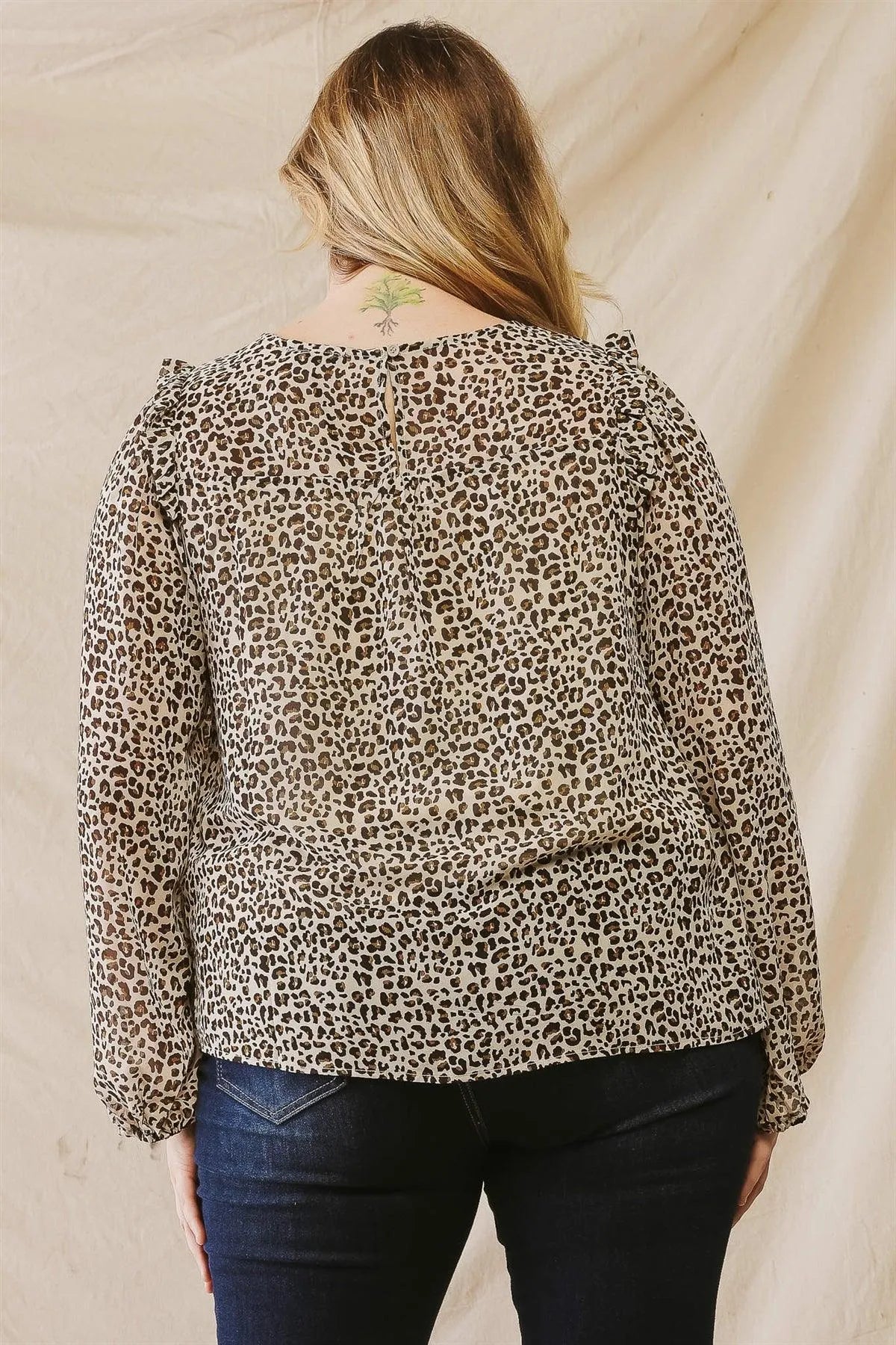Junior Plus Cream Leopard Print Ruffle Long Sleeve Top /3-2-1