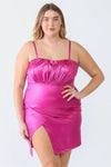 Plus Size Fuchsia Satin Strappy Wrap Hem Mini Dress /1-1-1
