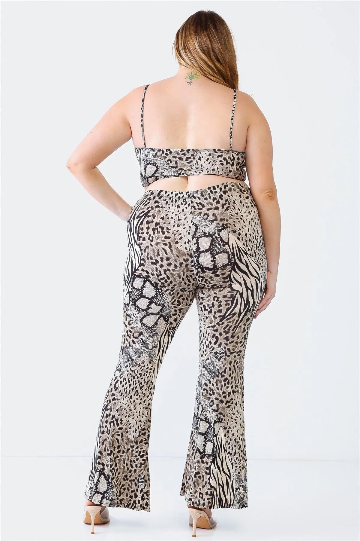 🖤 Unleash your wild side with our Junior Plus Size Animal Print Jumpsuit! This stylish piece features a playful animal print, sleeveless design with straps and a front bow detail. The cut-out style and elasticized fit make it stretchy, comfortable, and perfect for any occasion. It's not only hot and cool, but also eye-catching and not see through. Get ready to turn heads and rock this jumpsuit