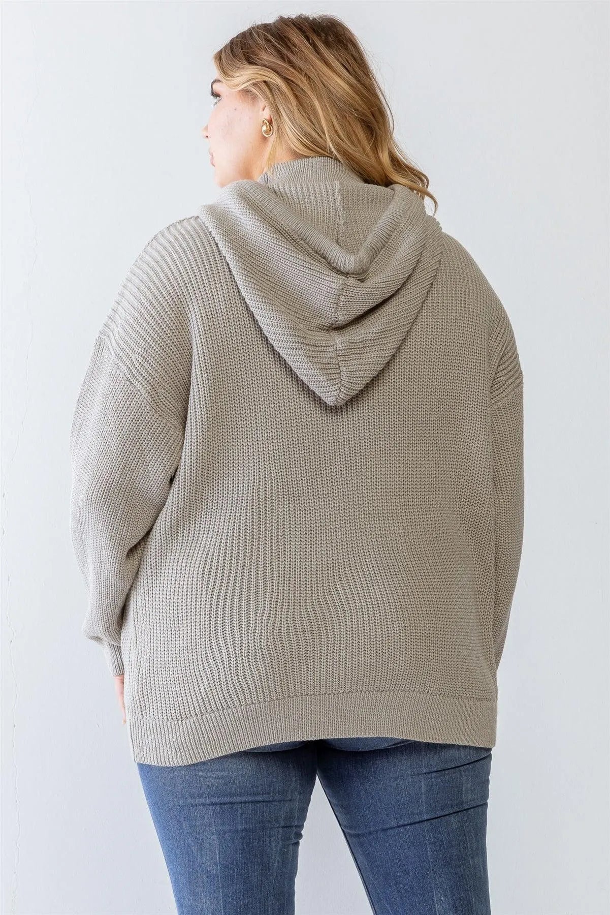 Junior Plus Heather Grey Knit Long Sleeve Hooded Sweater /3-2-1