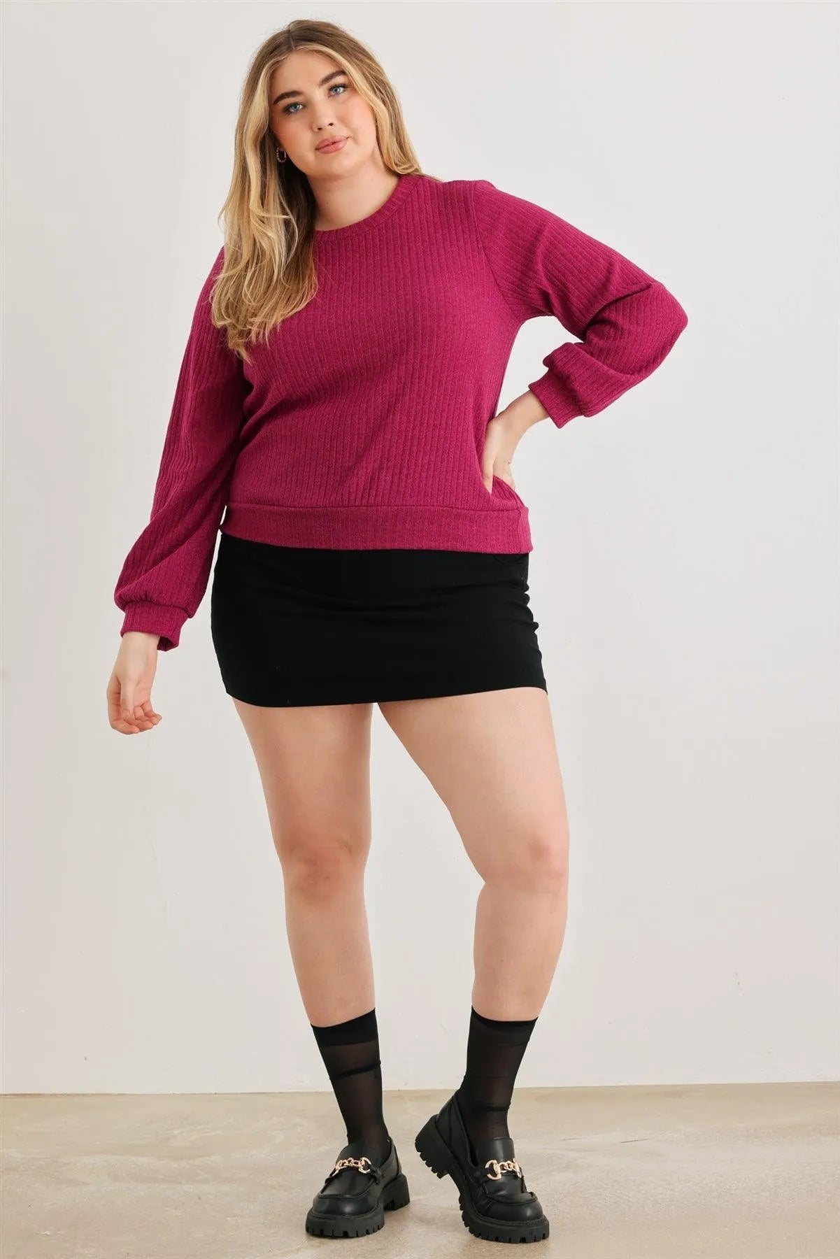 Plus Size Chunky Knit Boat Neck Ribbed Berry Pink Oversized Fall Winter SweaterVendor:White Birch
