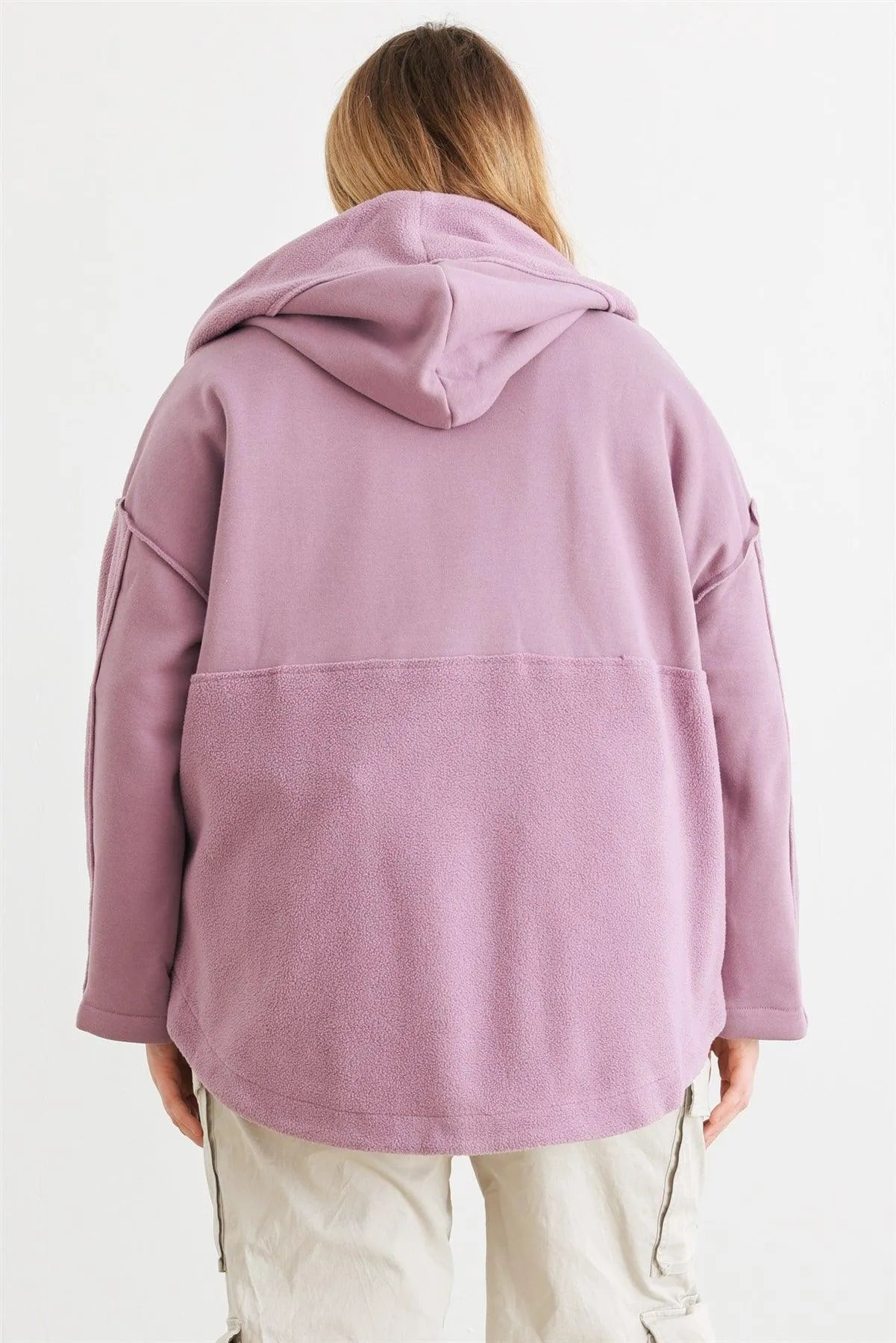 Plus Size Plush Mauve Hooded Fleece Jacket /2-2-2