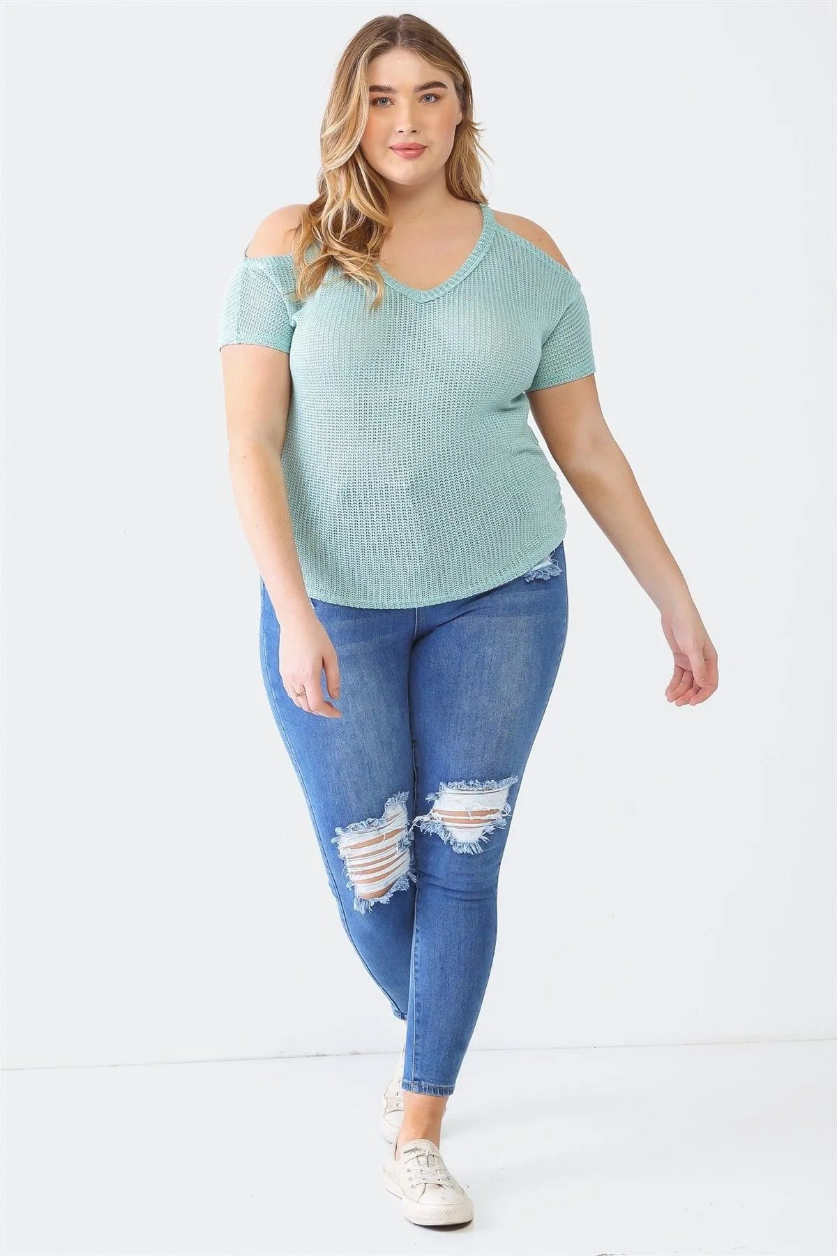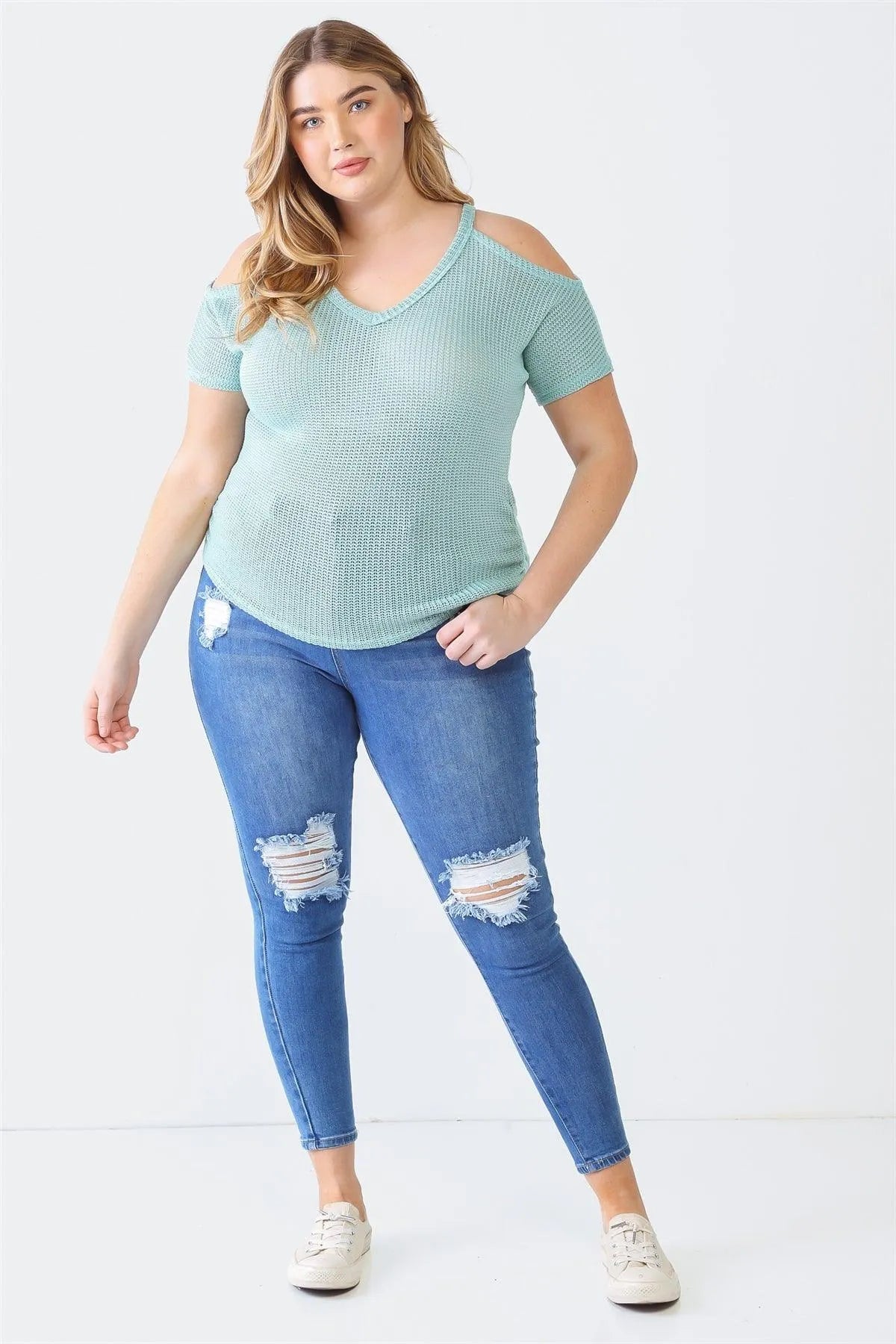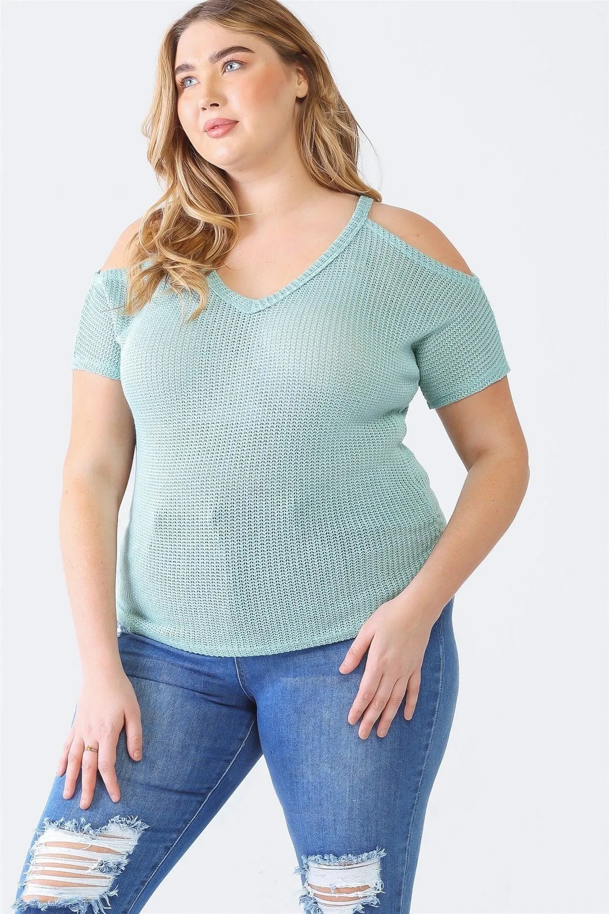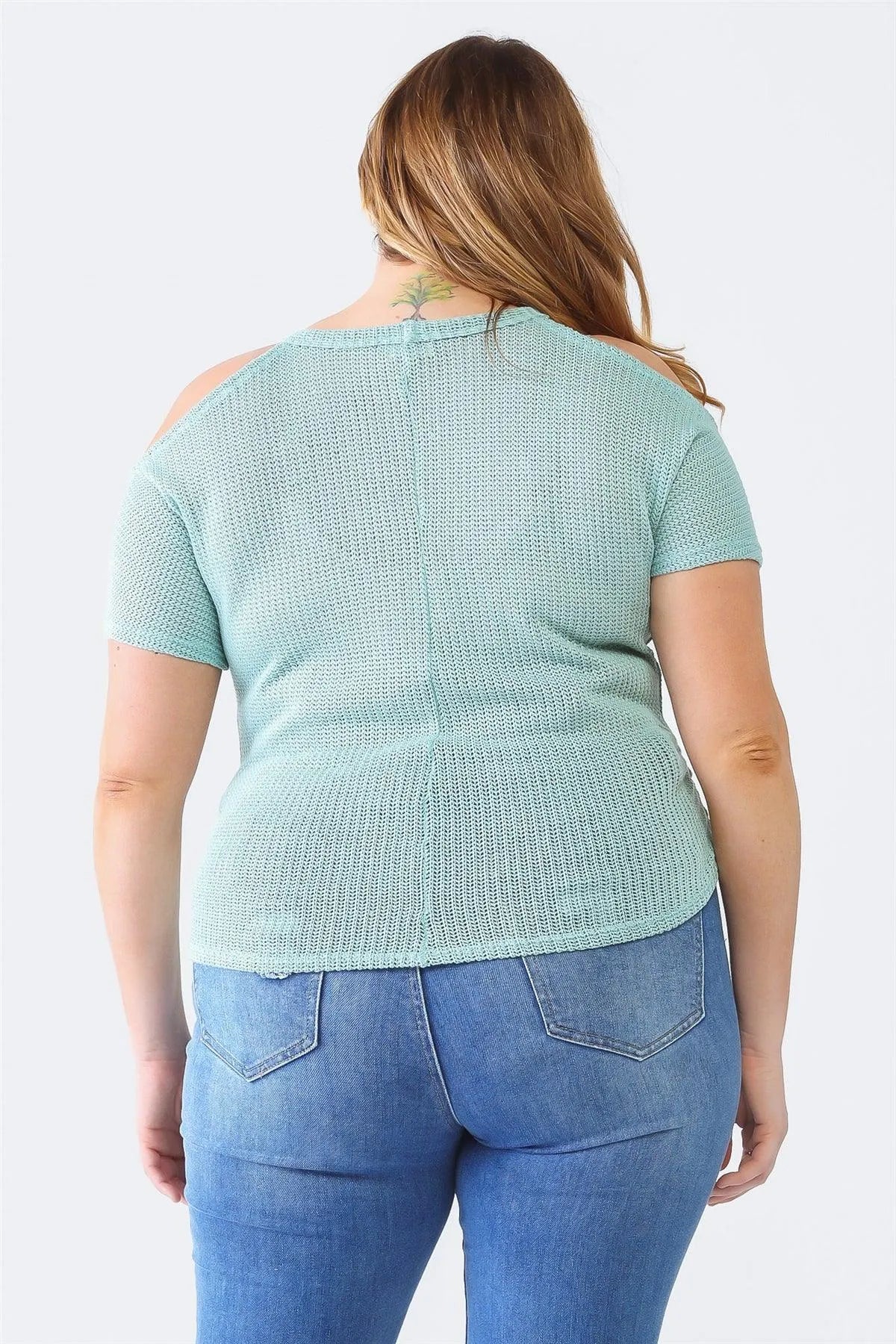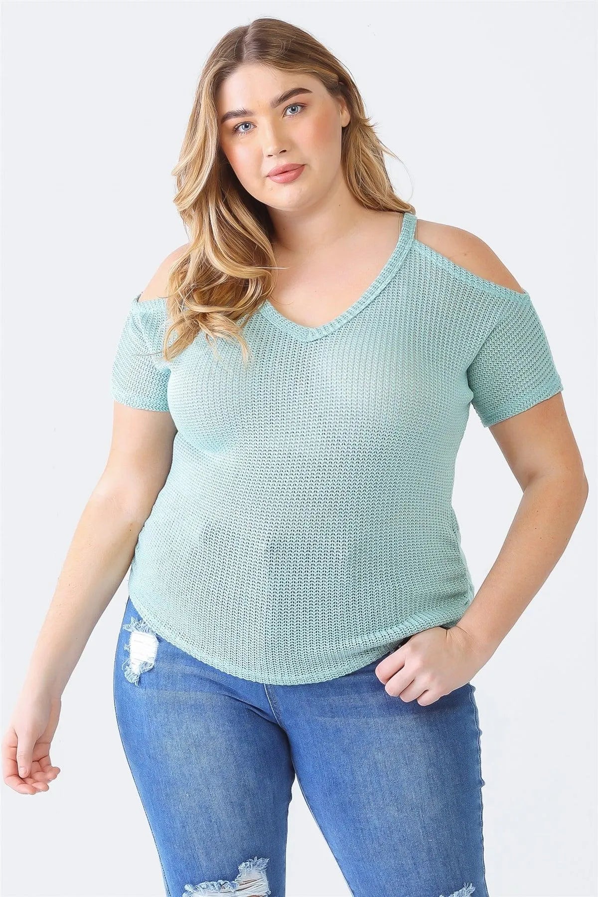 Junior Plus Mint Knit Off-The-Shoulder Short Sleeve Top /1-1-1