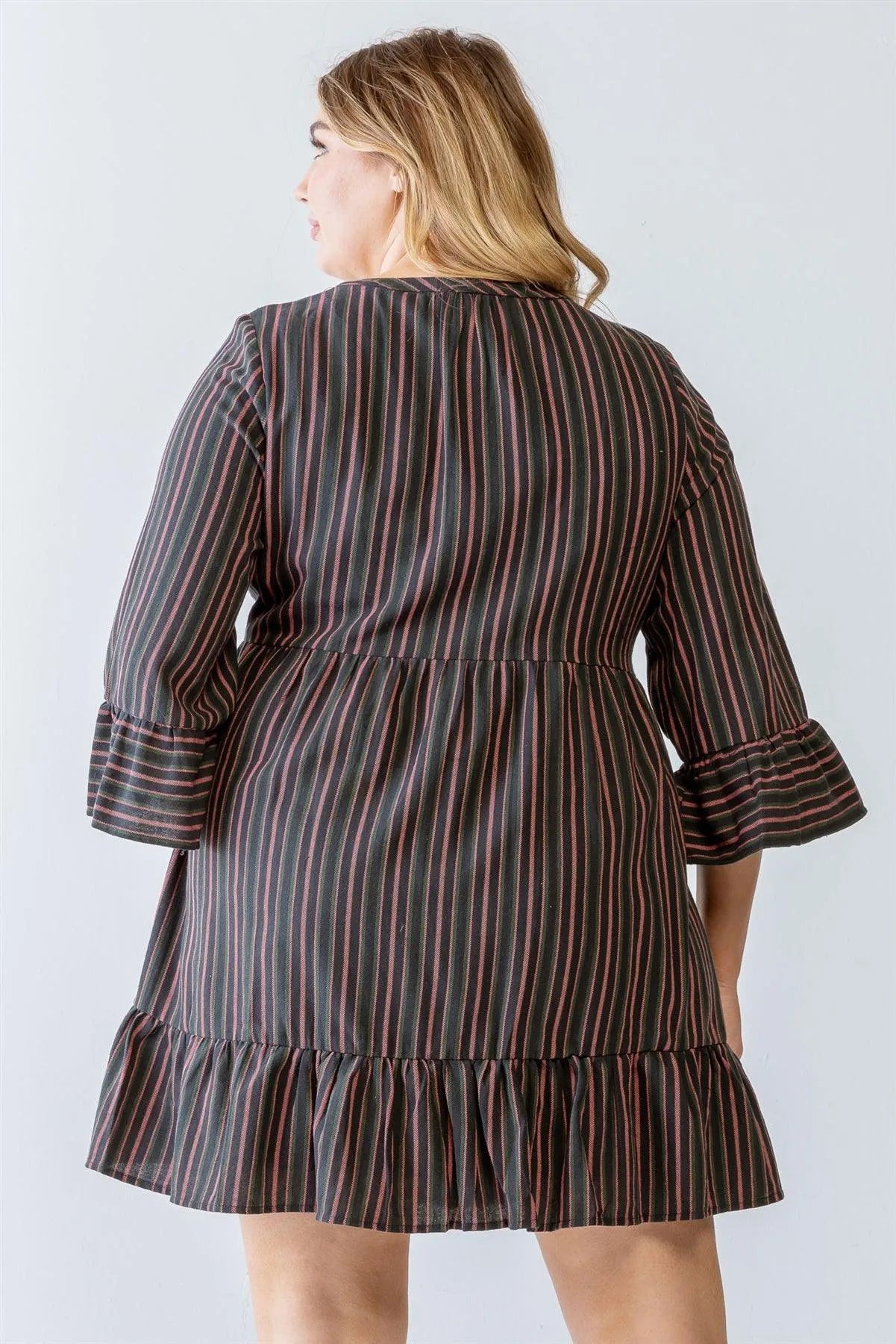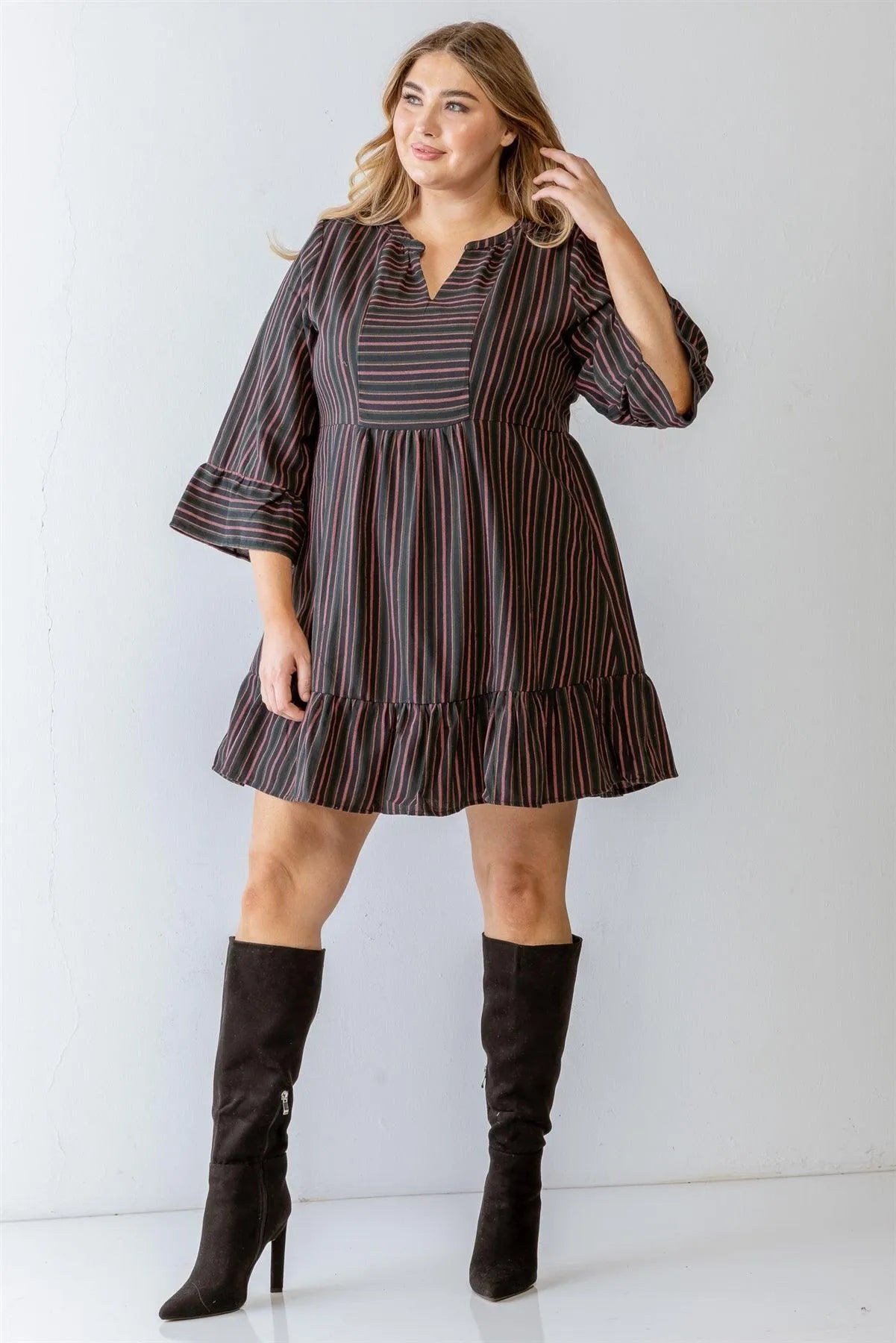 Junior Plus Navy Stripe Print Cotton Flare Hem Mini Dress /3-2-1