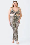 Plus Size Animal Print Bow Cut-Out Elasticized Jumpsuit