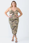 Plus Size Olive Printed Bow Cut-Out Sleeveless Midi Dress