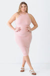 Junior Plus Pink Ribbed Sleeveless Criss-Cross Back Midi Dress /1-2-1
