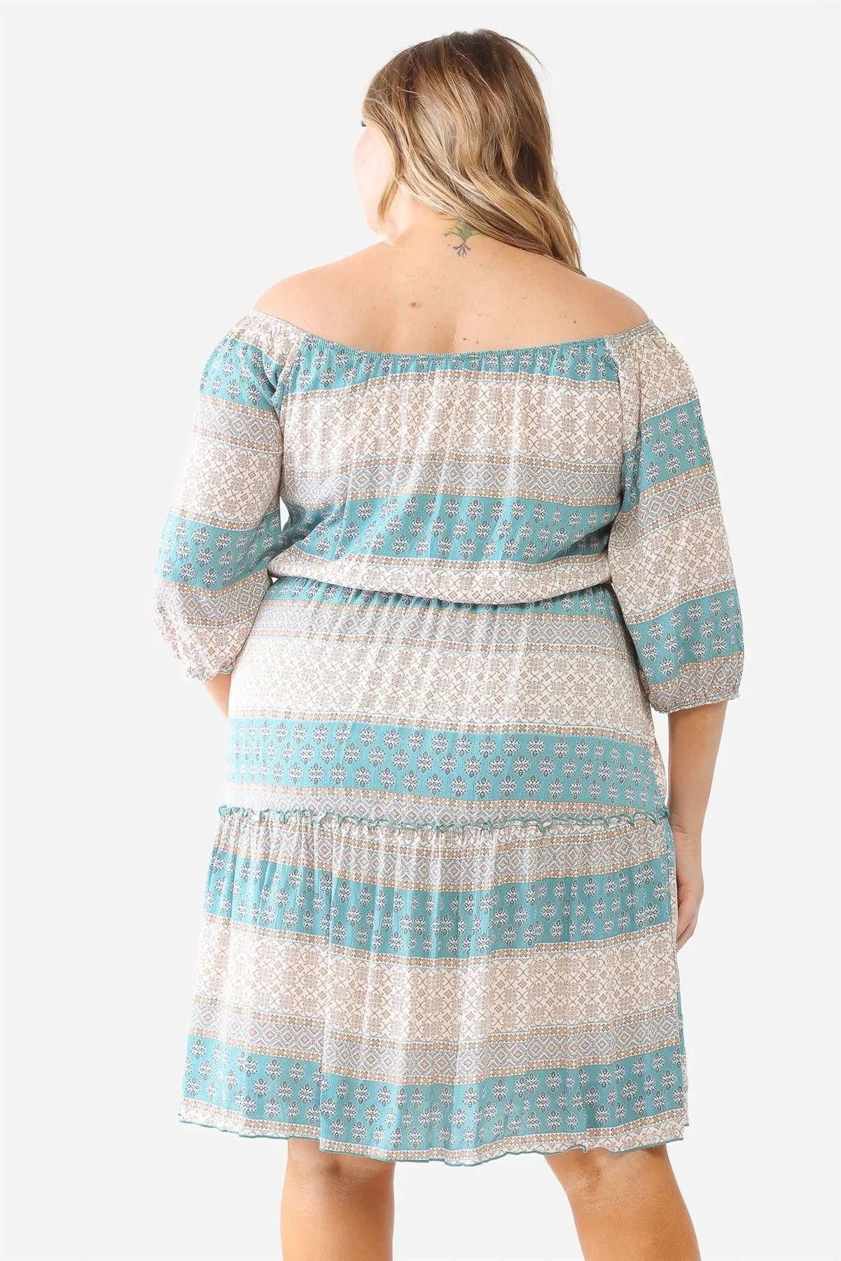 Plus Size Long Sleeve Ethnic Print Trim Casual Boho Shift Fall Winter Boutique DressVendor:Jade by Jane