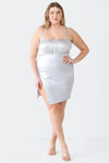 Plus Size Metallic Silver Satin Wrap Hem Mini Dress