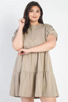 Junior Plus Stone Short Puff Sleeve Flare Mini Dress /3-2-1