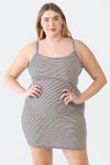 Junior Plus Taupe Stripe Print Sleeveless Strappy Mini Dress /1-1-1