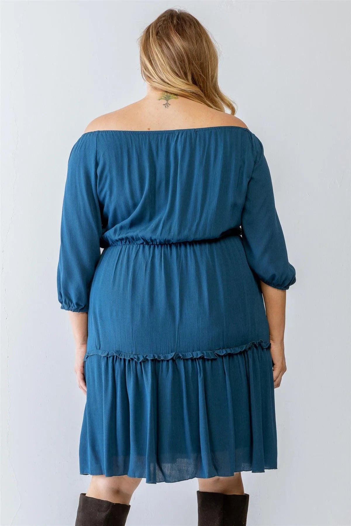 Junior Plus Teal Textured Ruffle Flare Hem Mini Dress /1-1-1