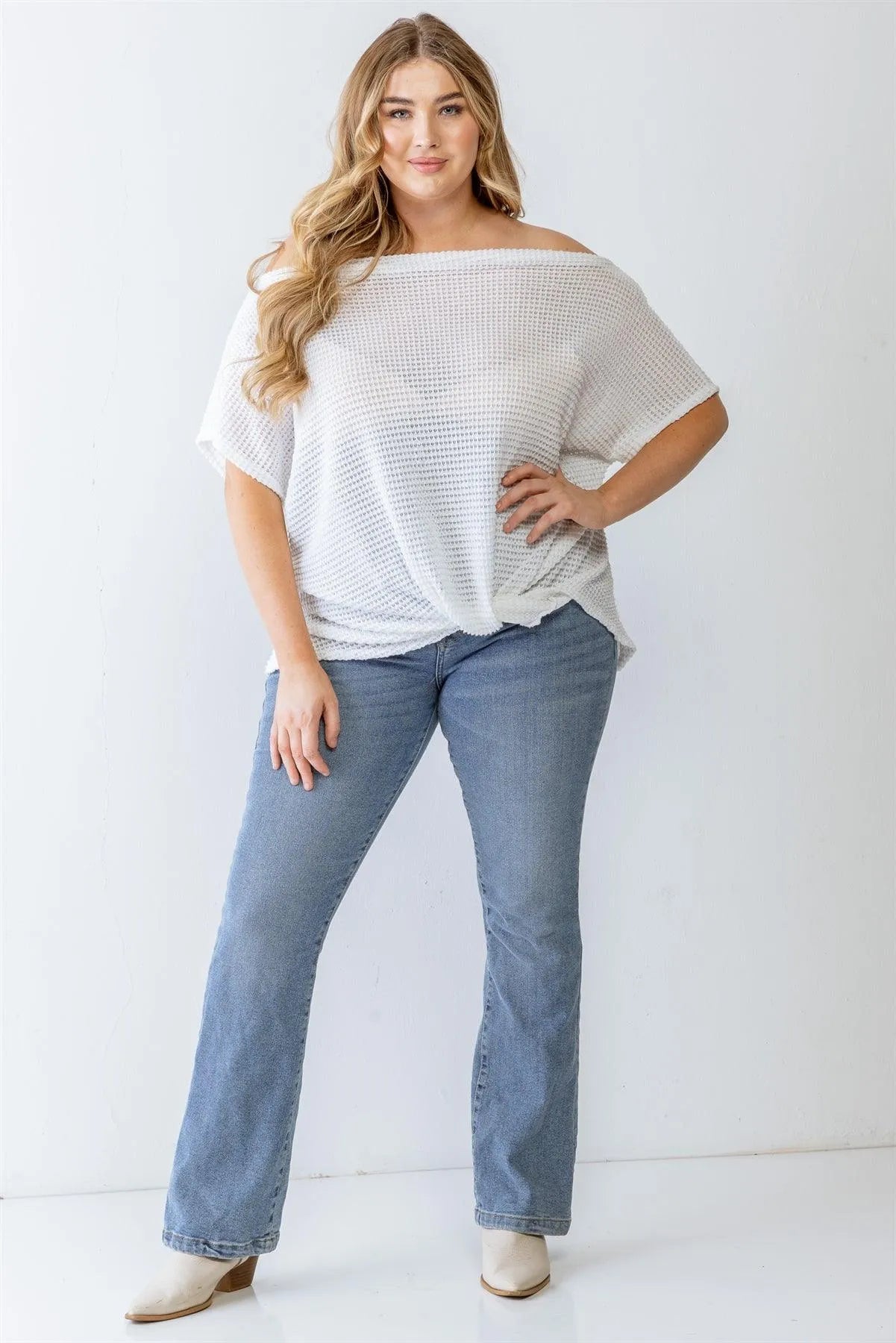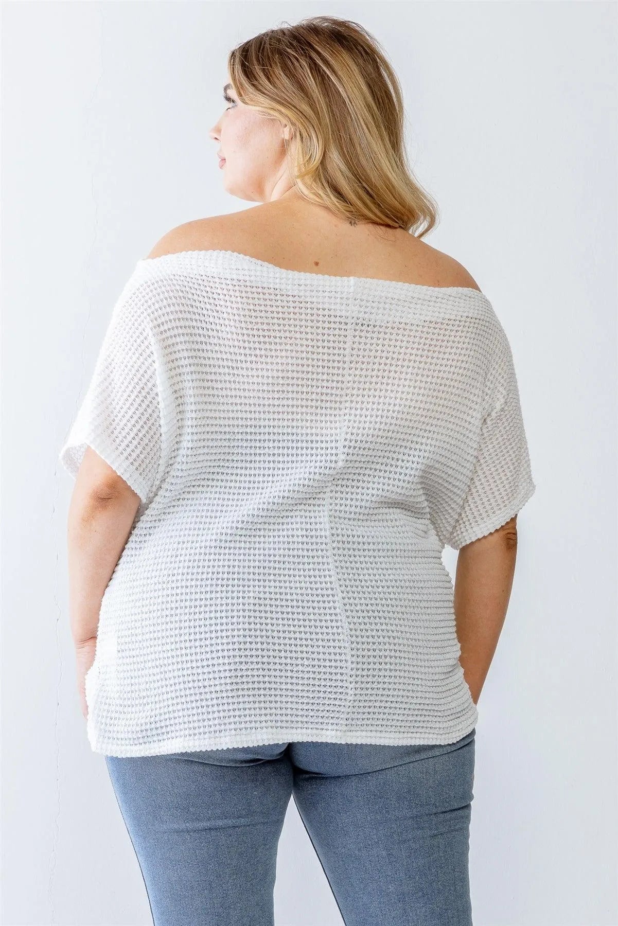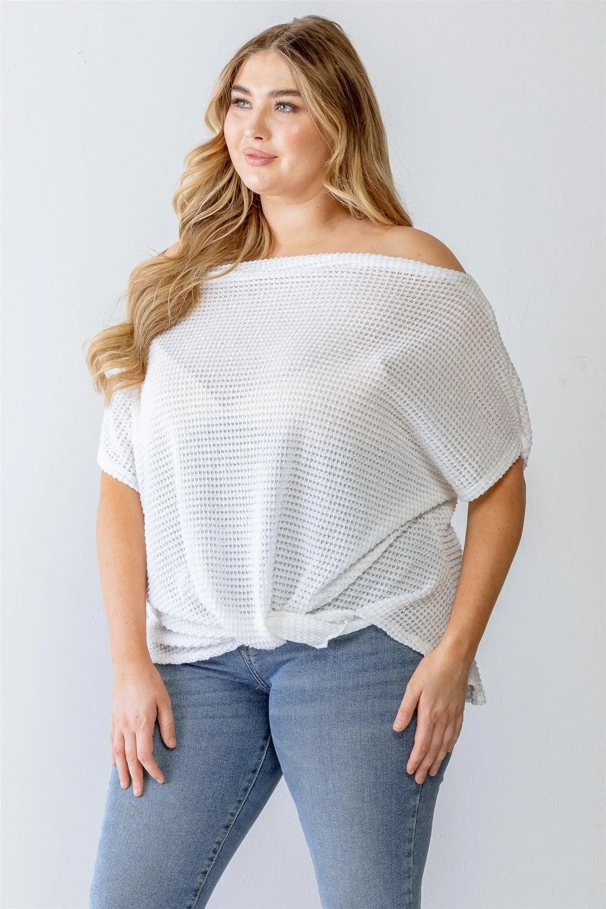 Junior Plus White Knit Off-The-Shoulder Wrap Detail Top /3-2-1