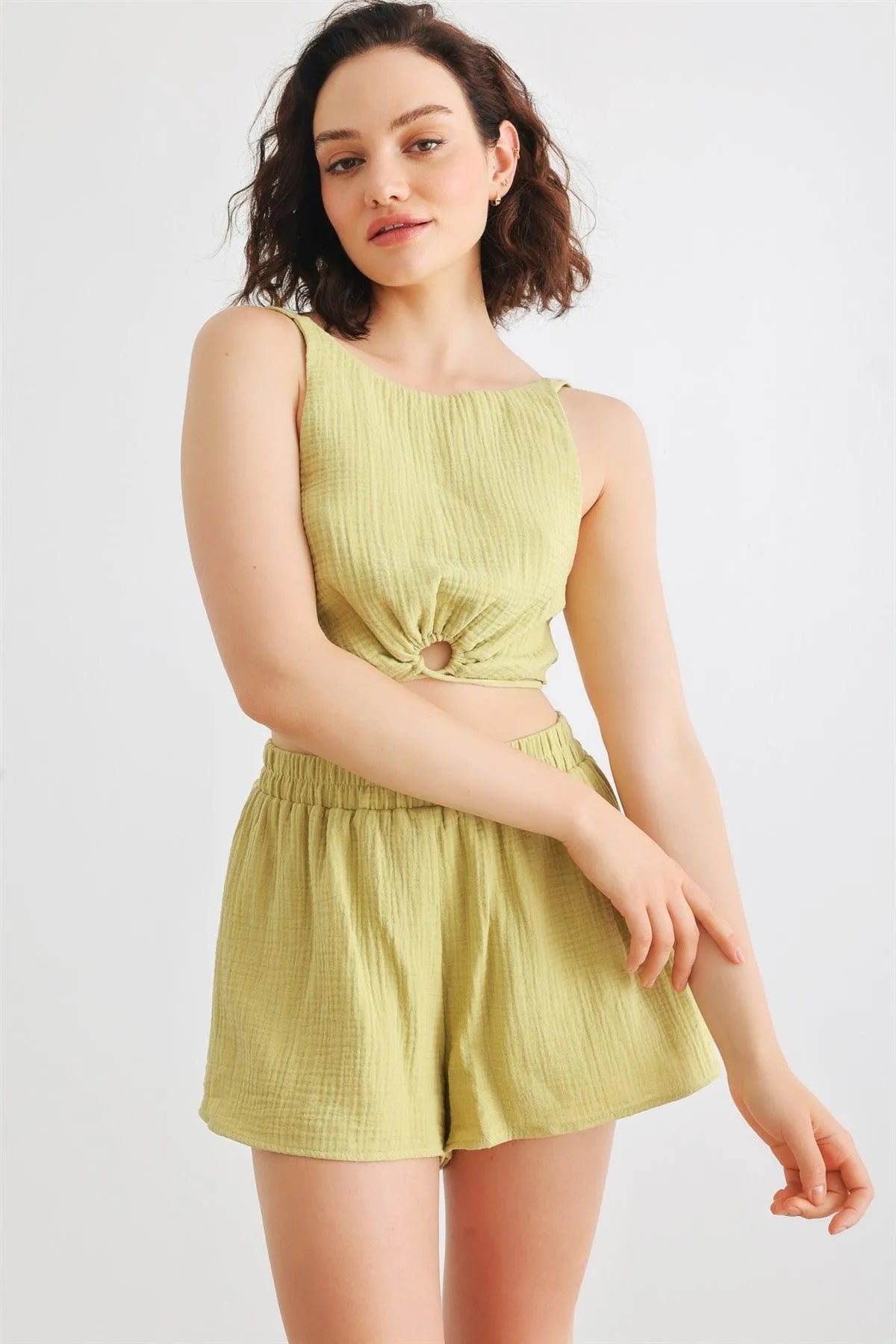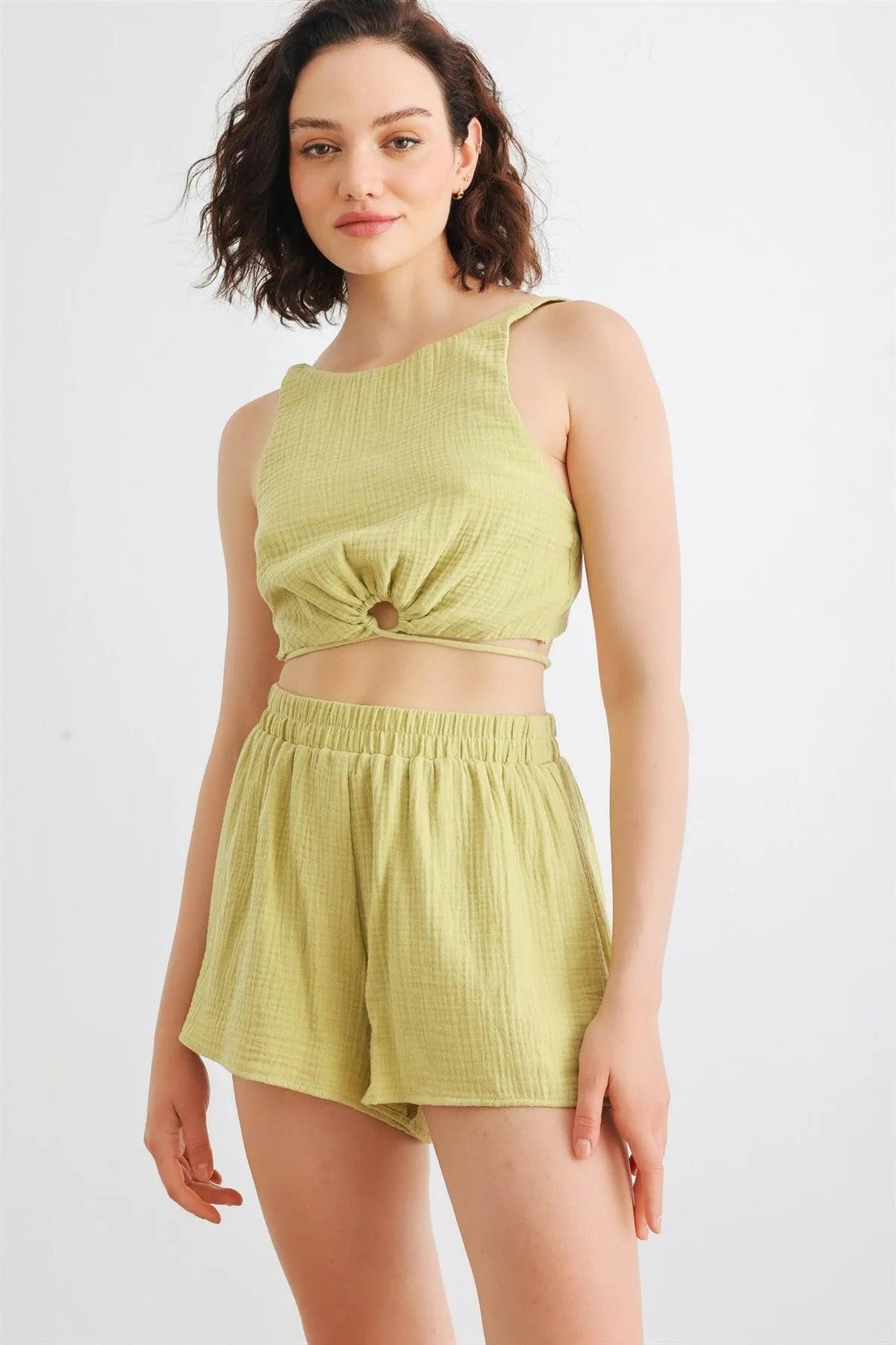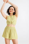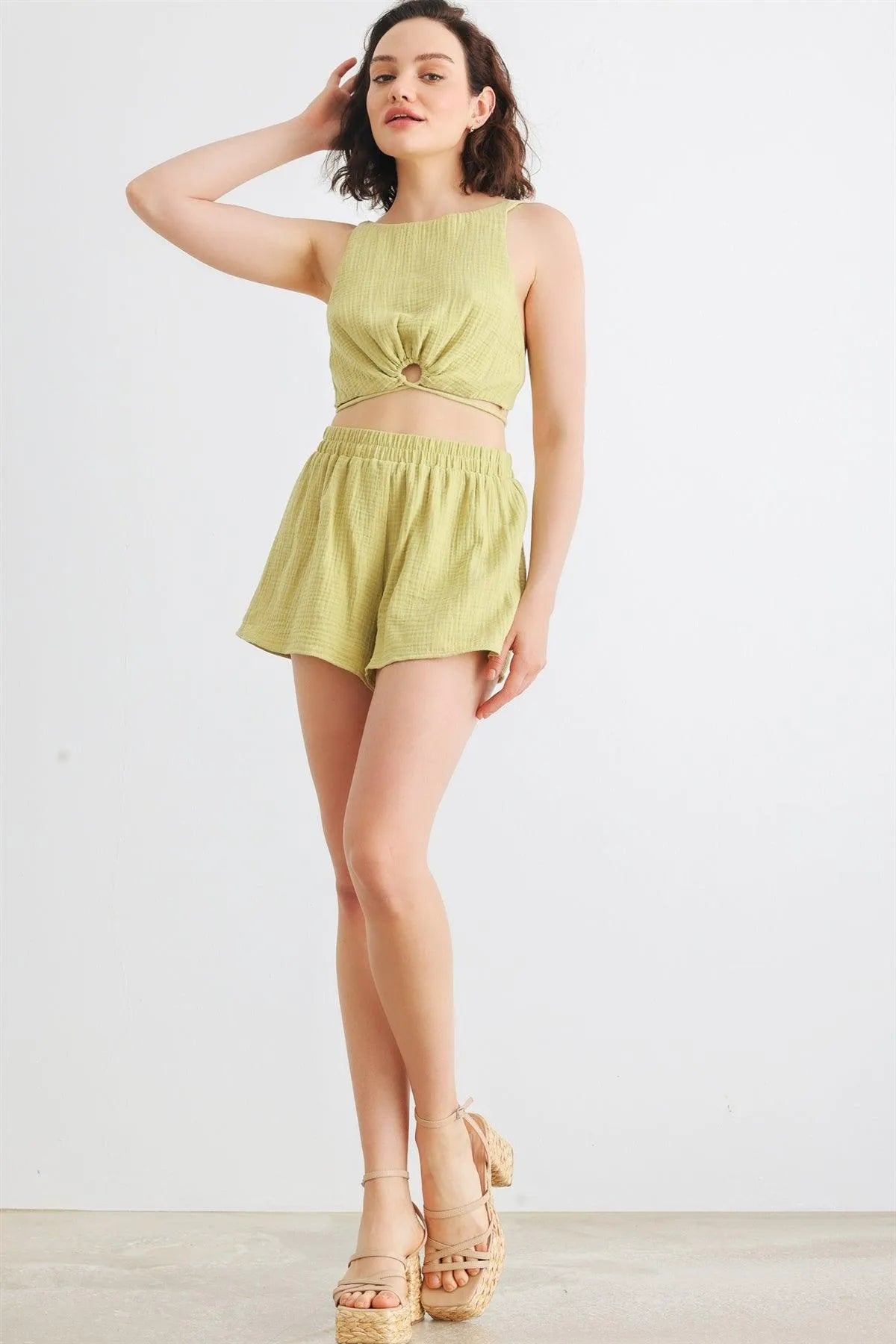 Kiwi Cotton Sleeveless Drawstring Hem Crop Top & High Waist Shorts Set /1-2-2-1