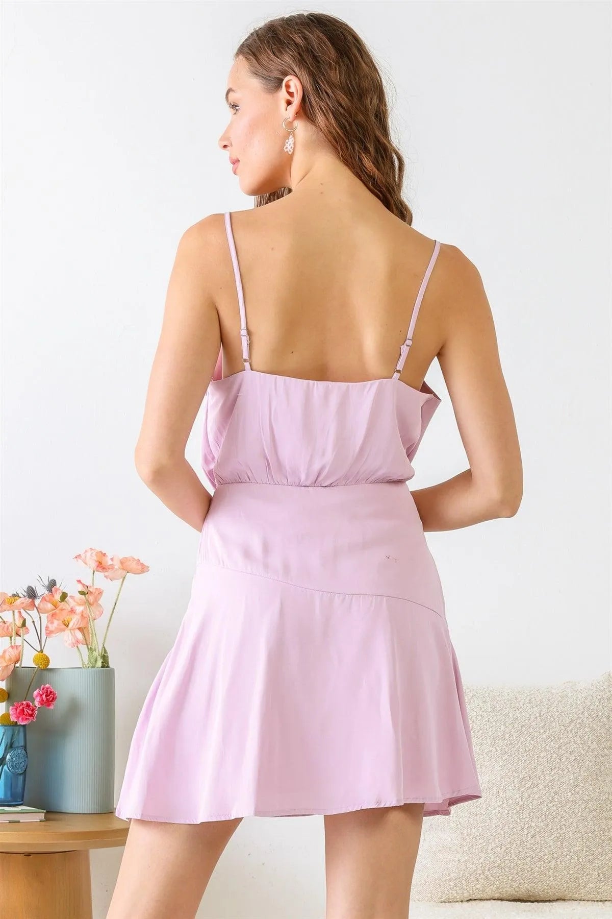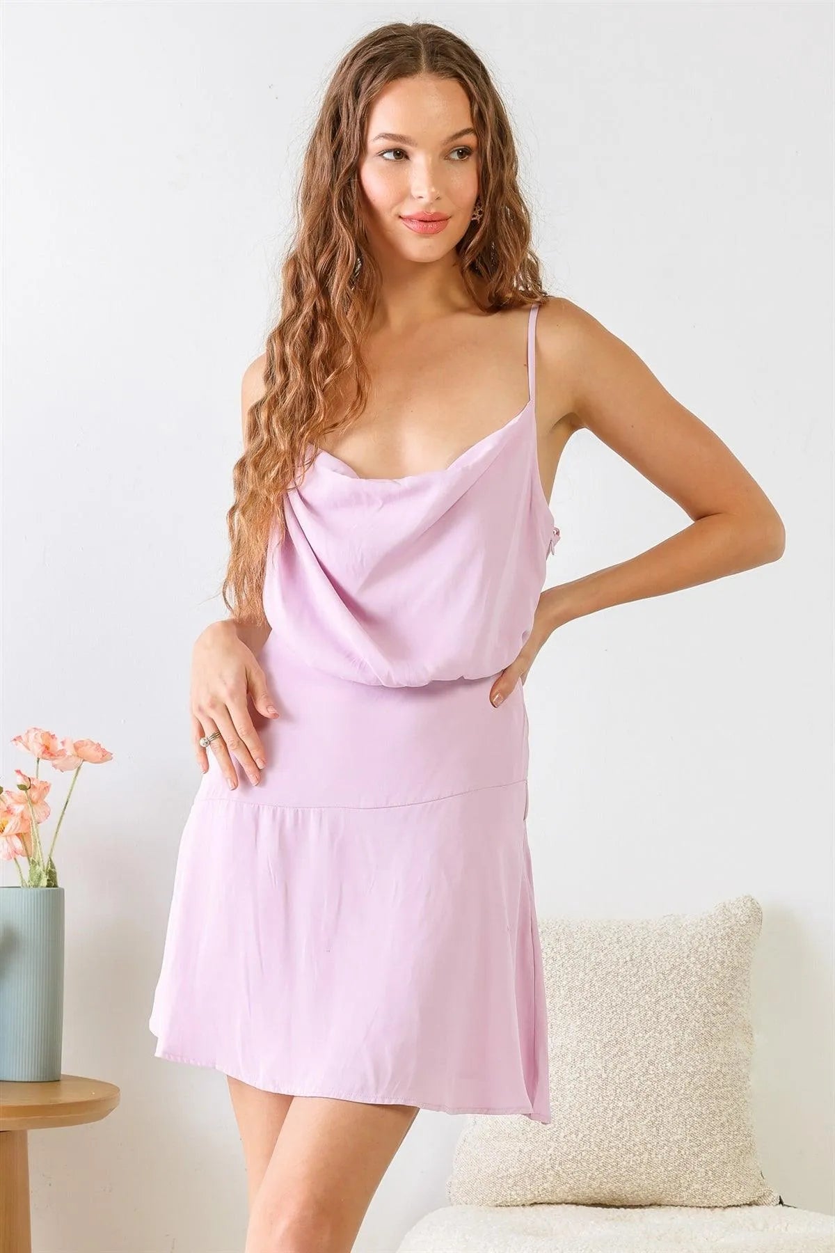 Lavender Cowl Neck Strappy Flare Hem Mini Dress /3-2-1
