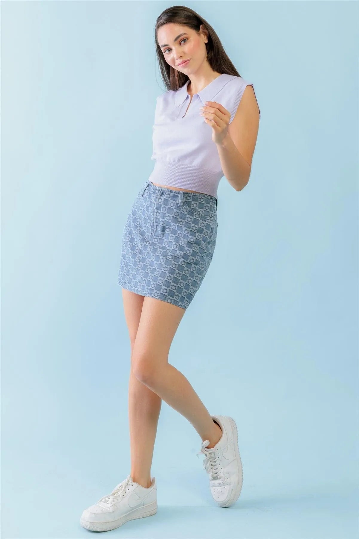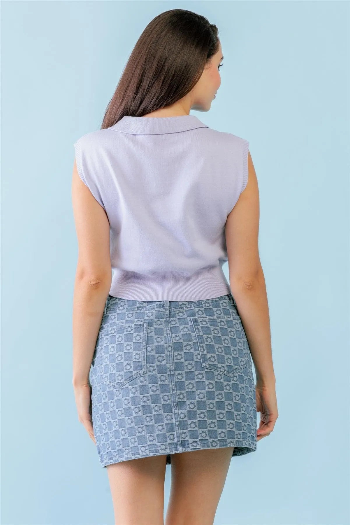 Lavender Sleeveless Collared Neck Crop Top /3-2-1
