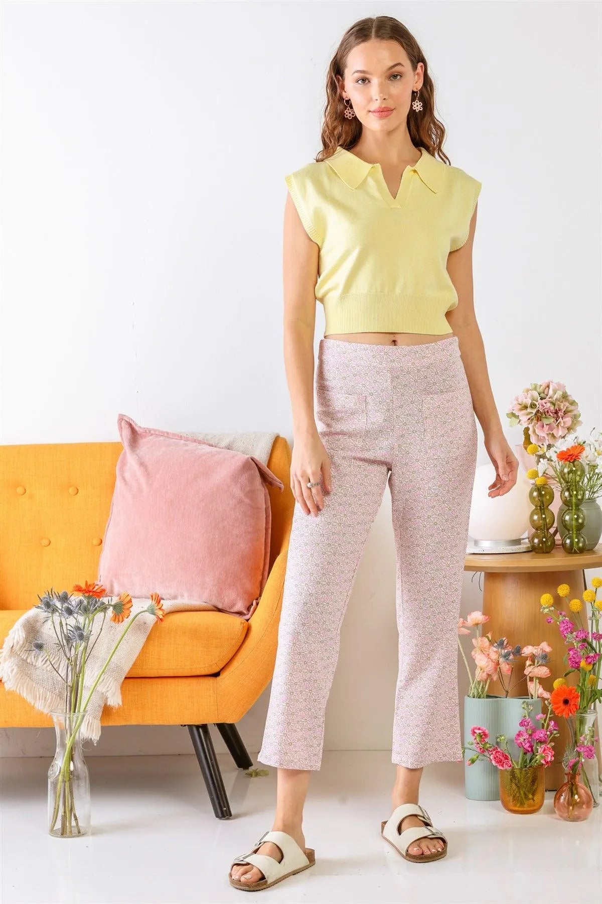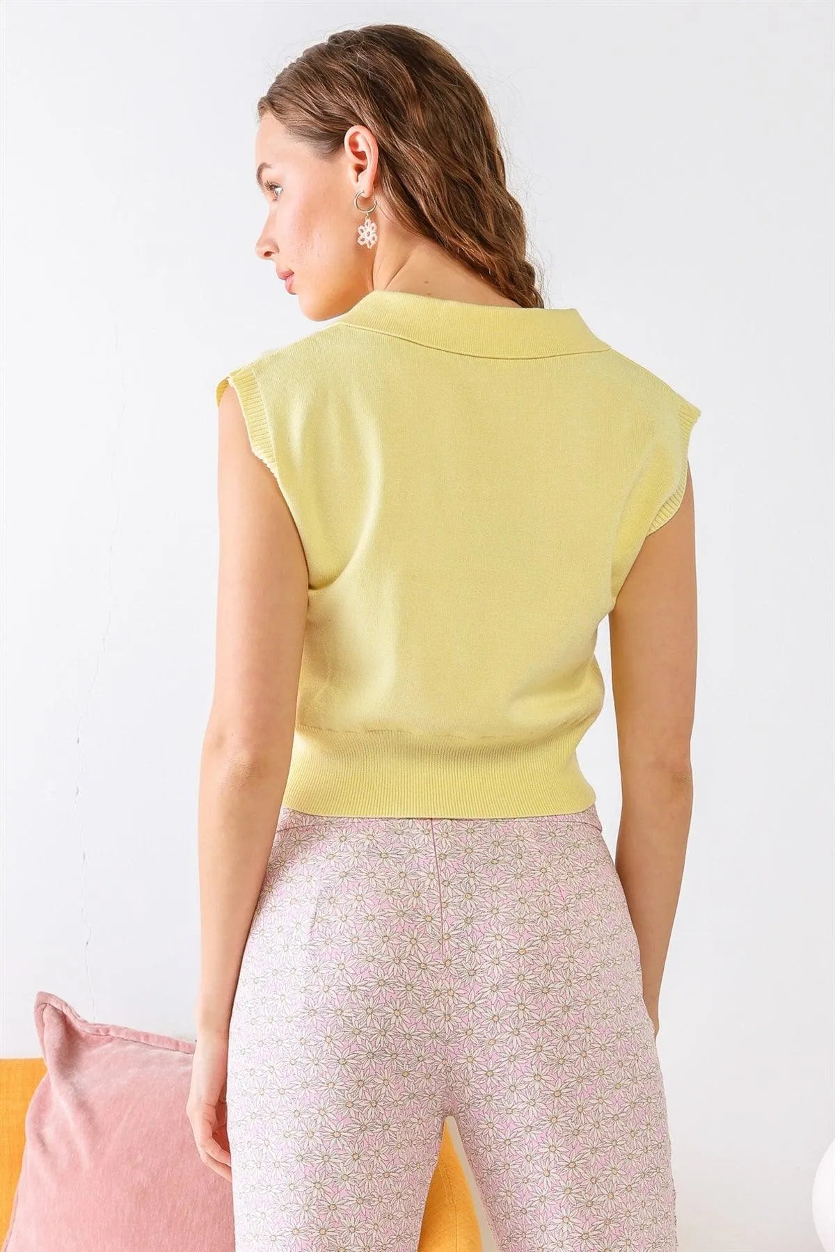 Lemon Sleeveless Collared Neck Crop Top /3-2-1