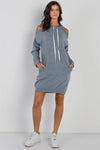 Light Blue Cold Shoulder Hooded Long Sleeve Dress