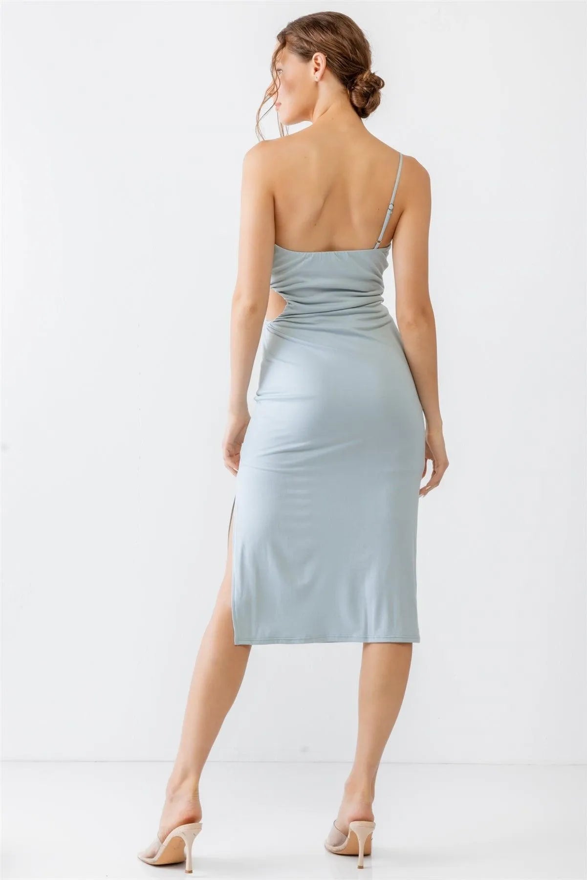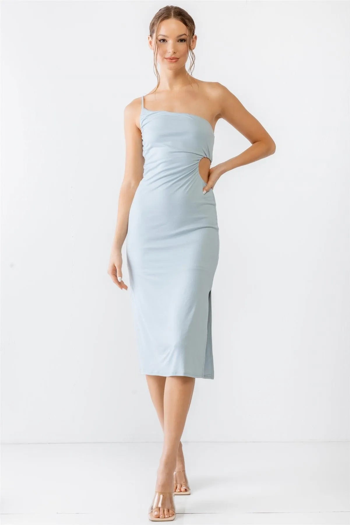 Light Blue One Shoulder Cut-Out Side Midi Dress /3-2-1