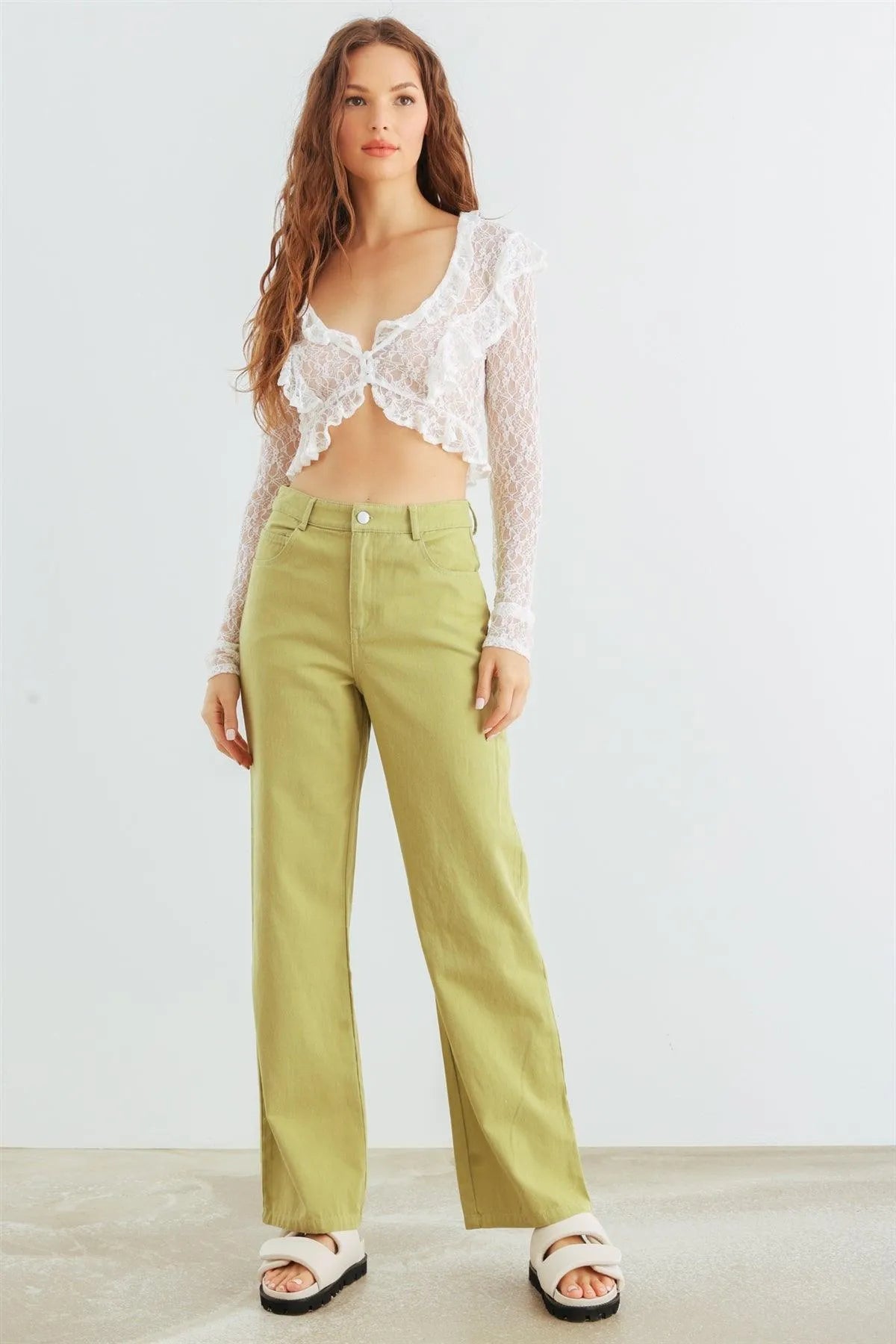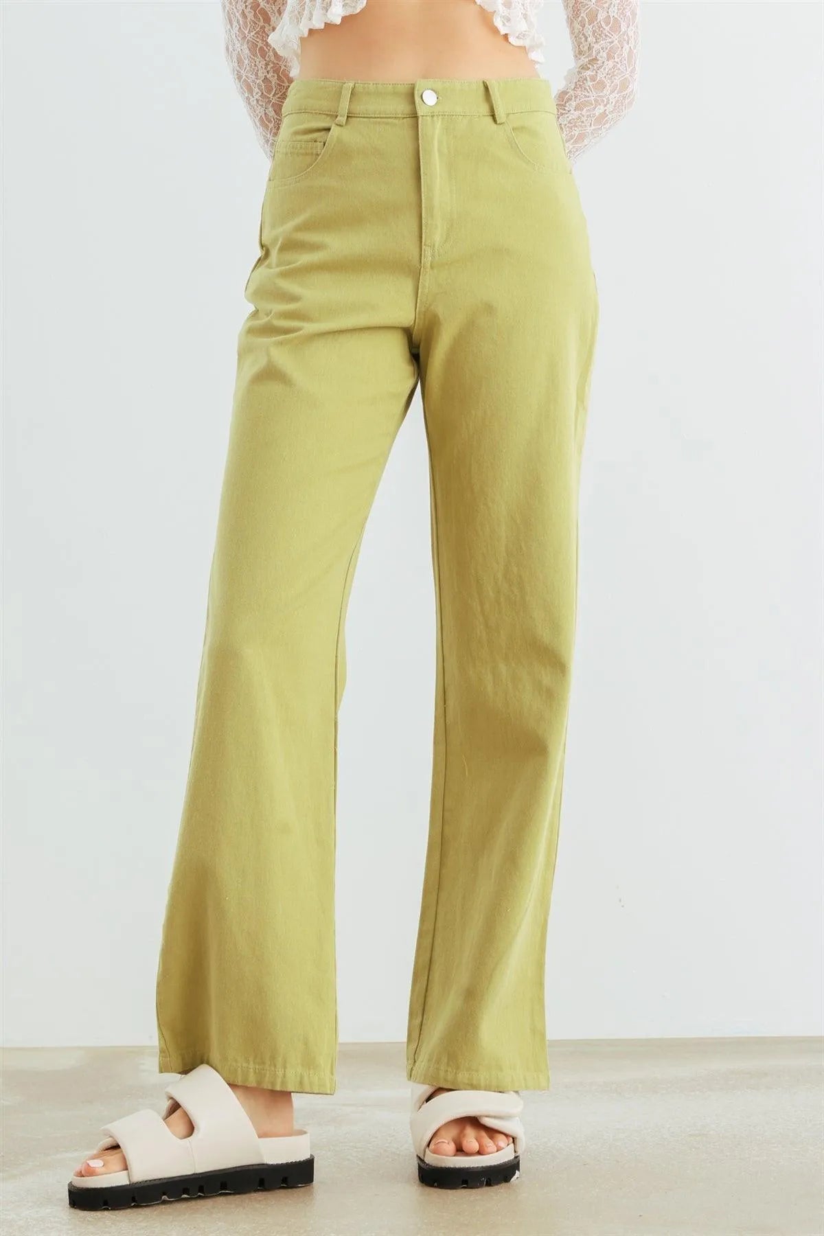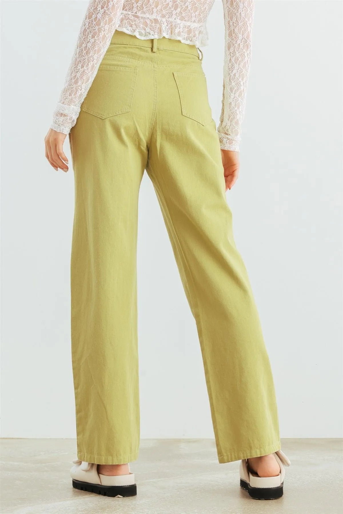 Light Green Denim Cotton High Waist Pants /1-2-2-1