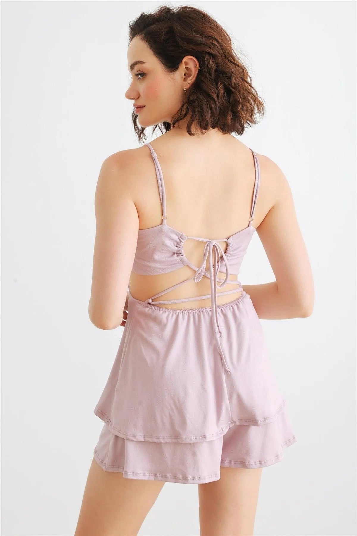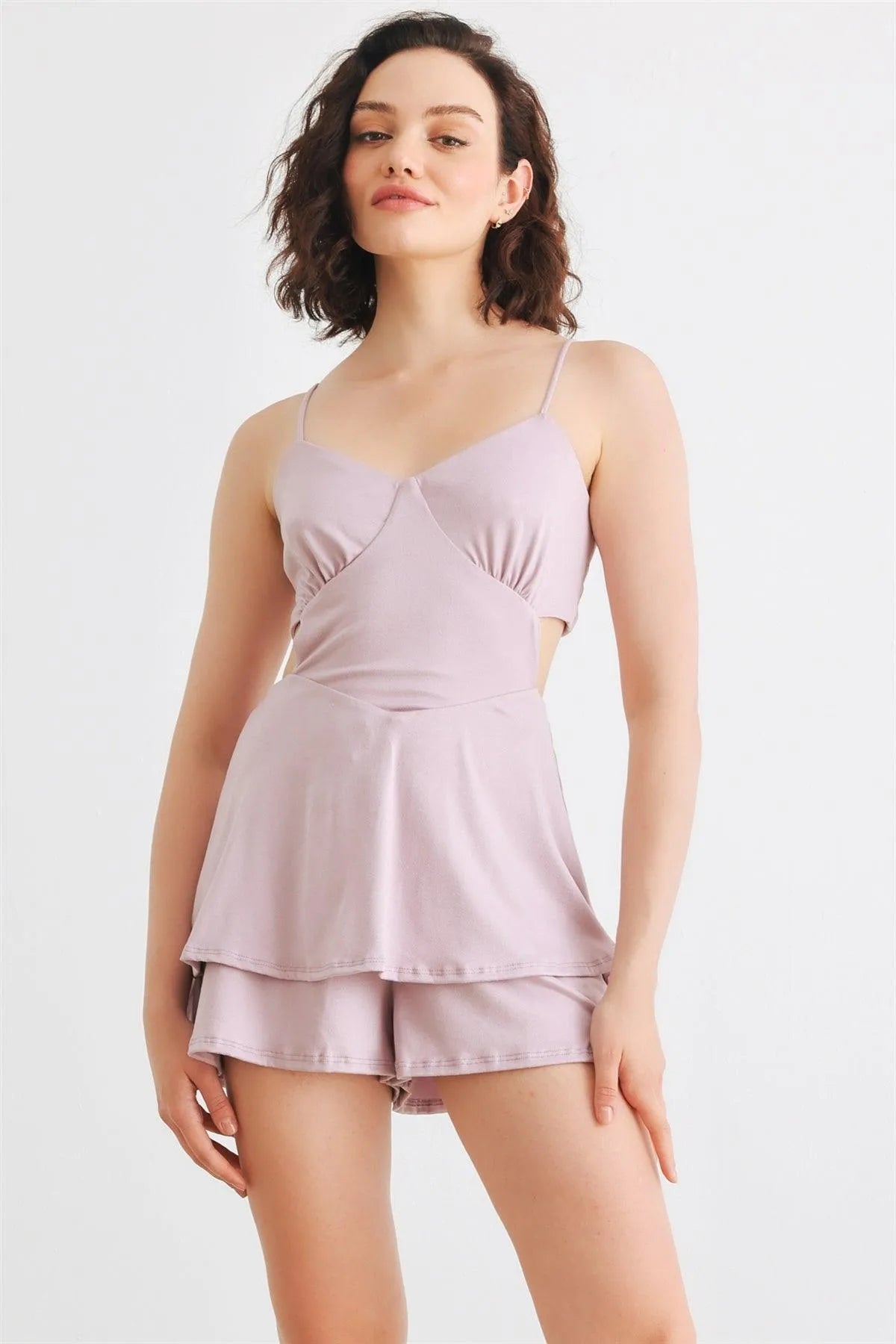 Lilac Sleeveless Strappy V-Neck Back Lace-Up Romper /1-2-1-1