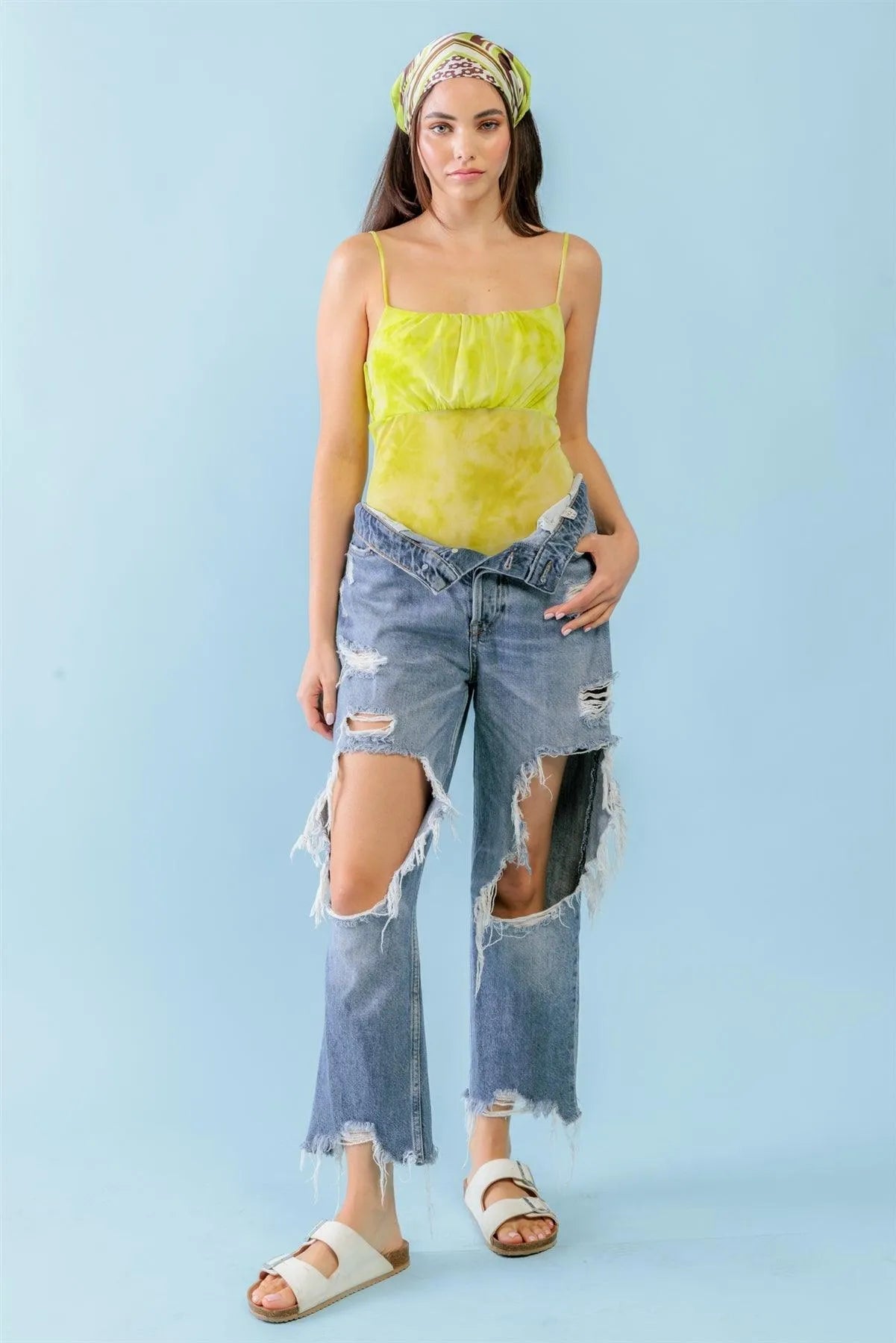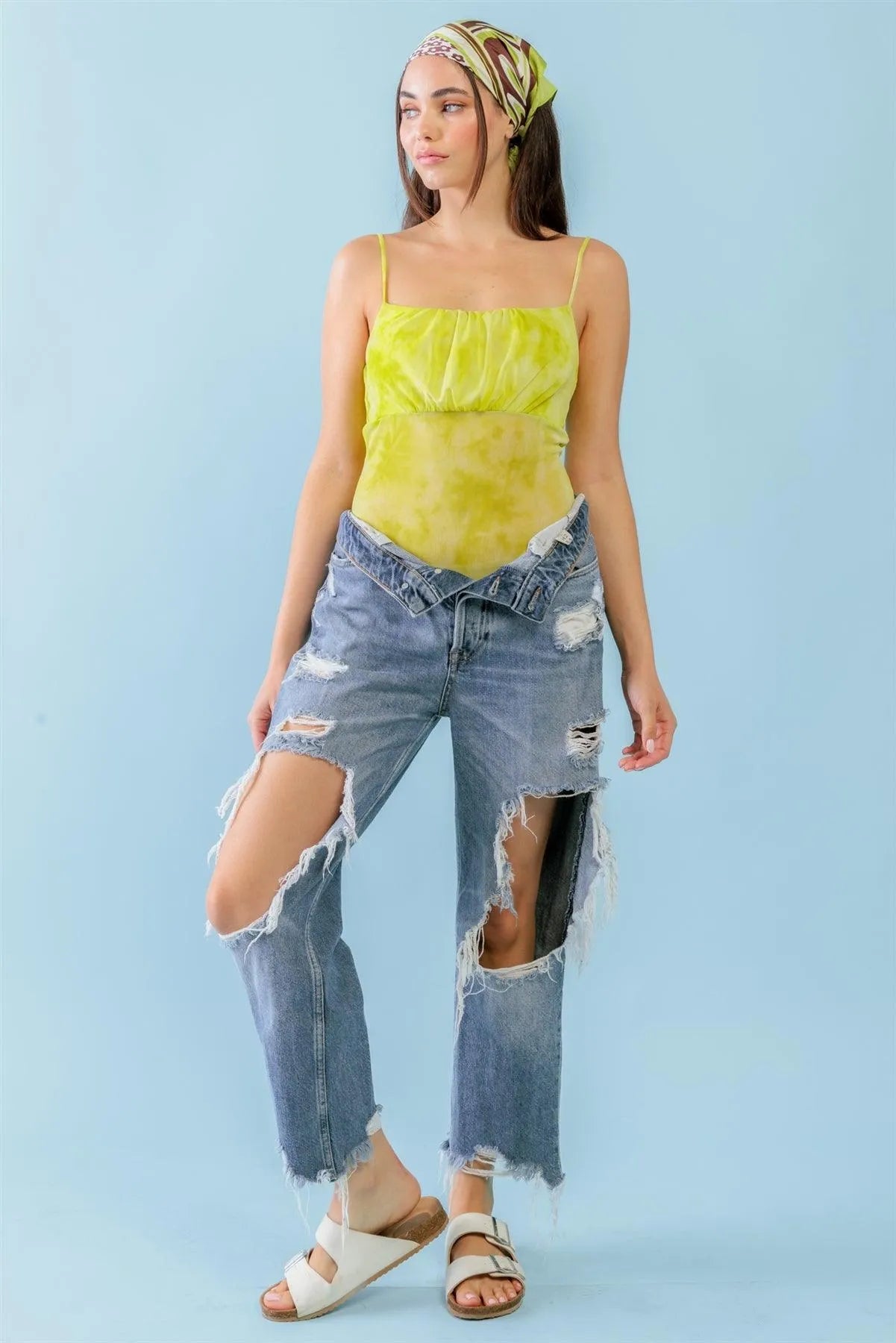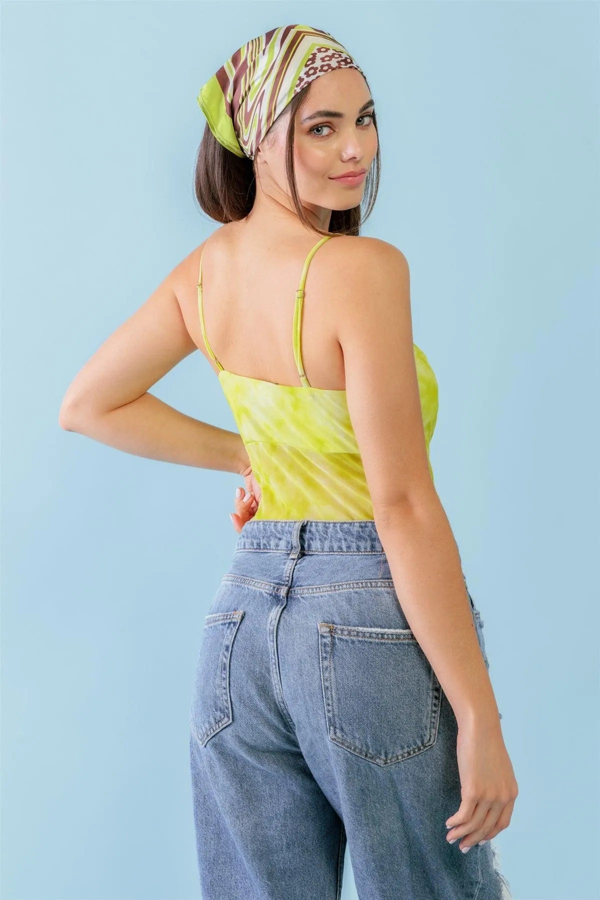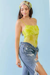 Lime & White Tie-Dye Mesh Sleeveless Strappy Bodysuit /3-2-1