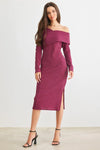 Coral Off Shoulder Ribbed Knit Long Sleeve Boutique Maxi DressVendor:HYFVE