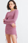 🖤 Be pretty in pink (and white) with our Knit Long Sleeve Ruched Mini Dress! This dress features a cozy knit material, long sleeves, and a flattering crew neckline. The ruched sides with adjustable drawstring allow for a personalized fit, while the mini length adds a touch of playfulness. Perfect for any casual occasion, this dress is both cute and cool.