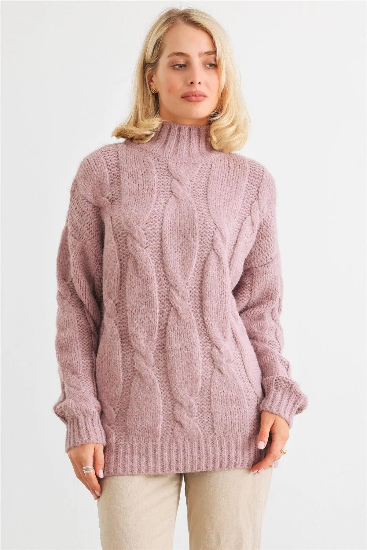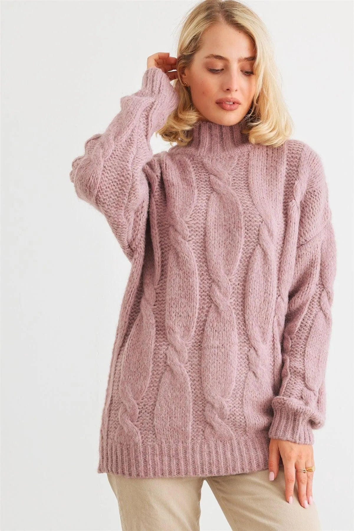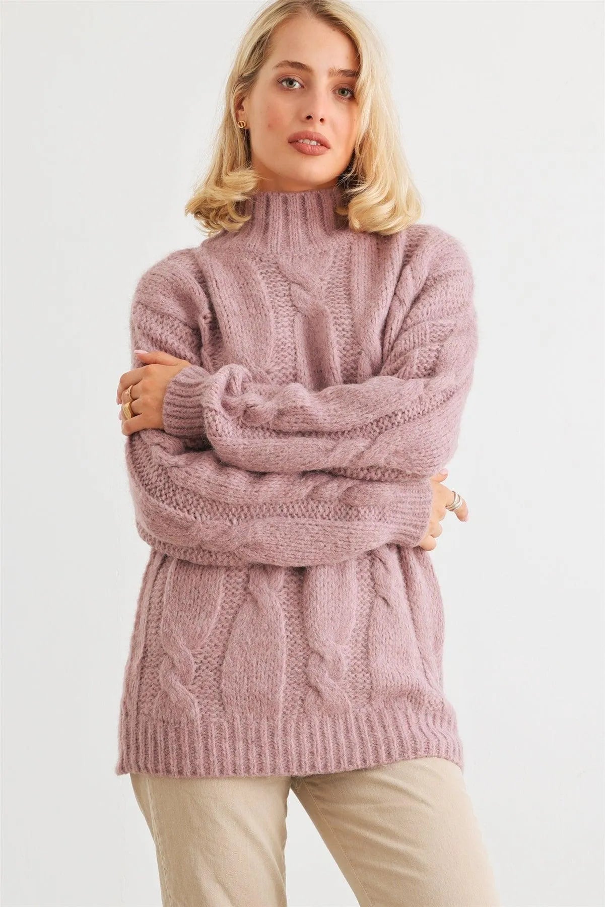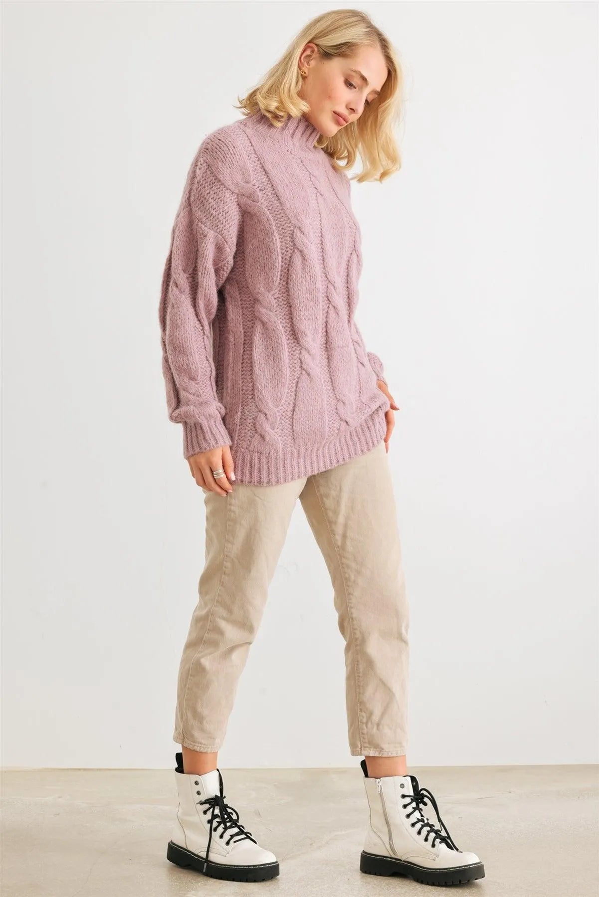 Mauve Cable Knit Turtle Neck Long Sleeve Sweater /1-1-1