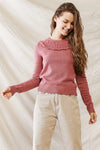 Mauve Knit Collared Neck Long Sleeve Sweater /1-3-2