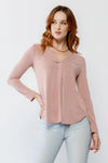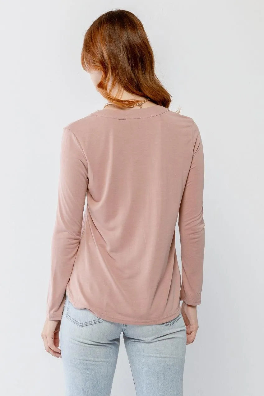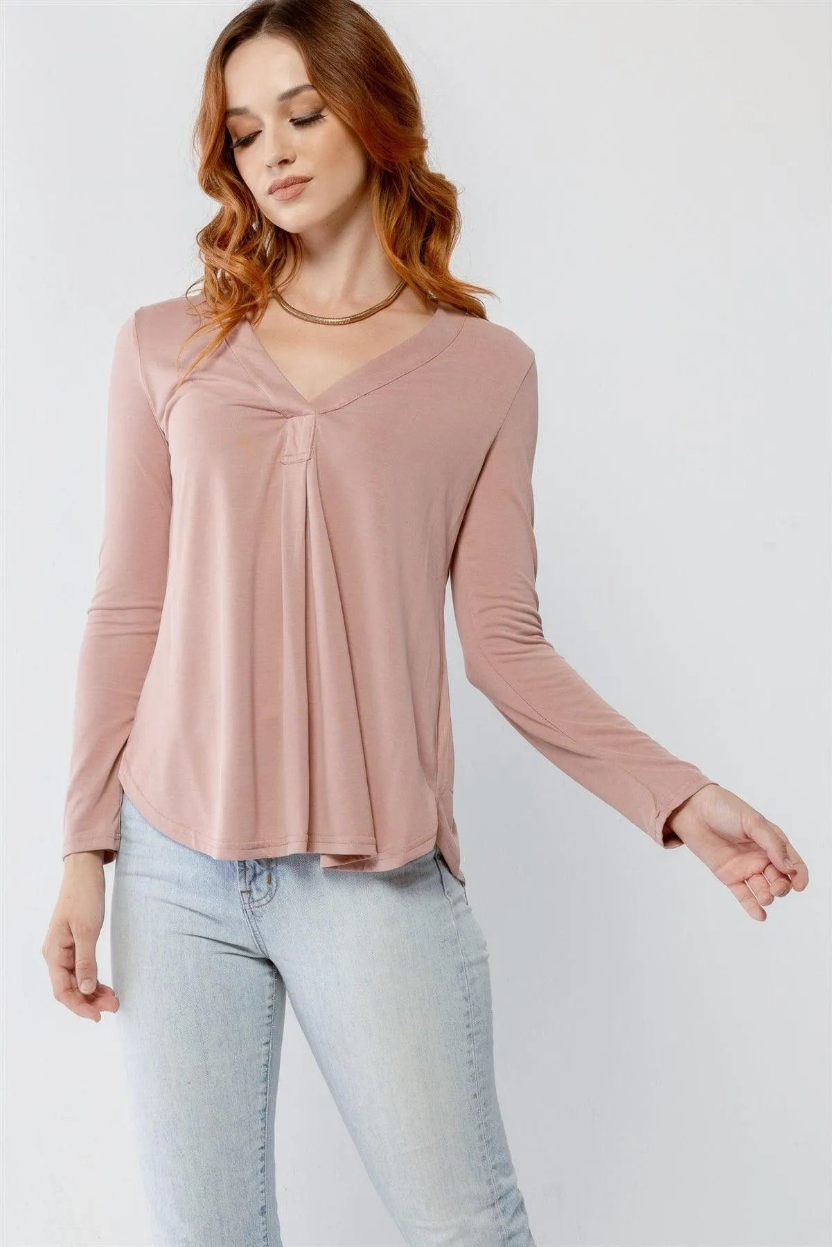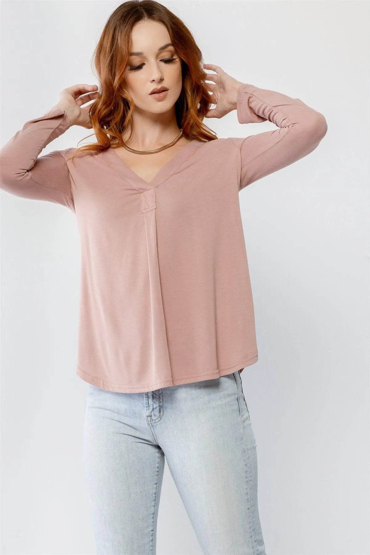 Mauve V-Neck Long Sleeve Basic Relax Basic Top /2-2-2