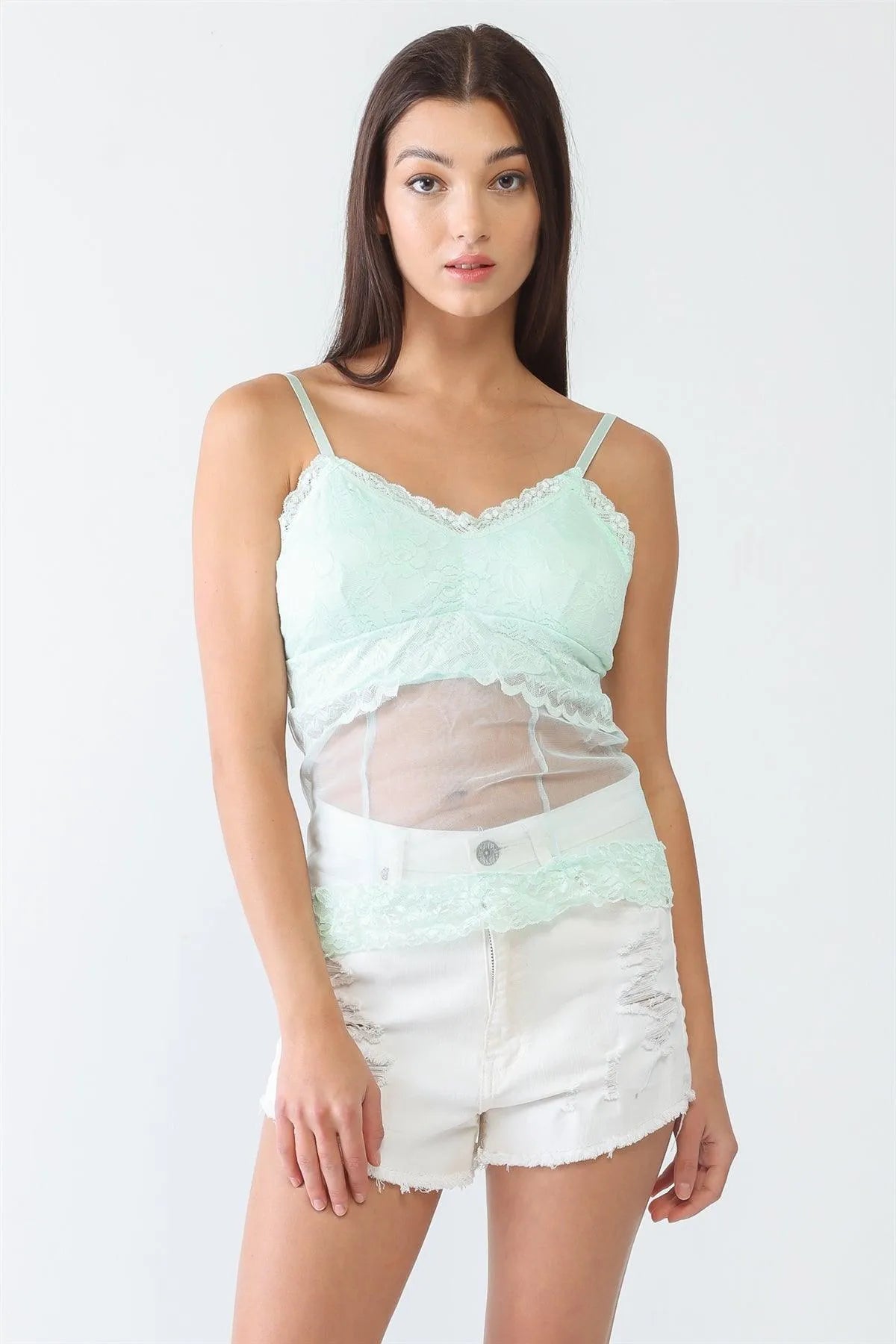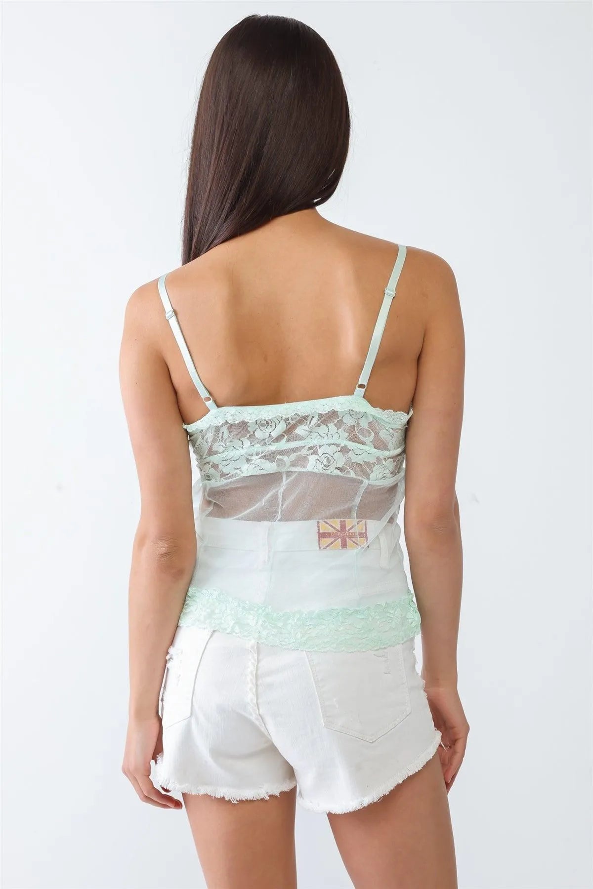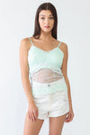 Mint Sheer Mesh Lace Sleeveless Push-Up Bustier Top