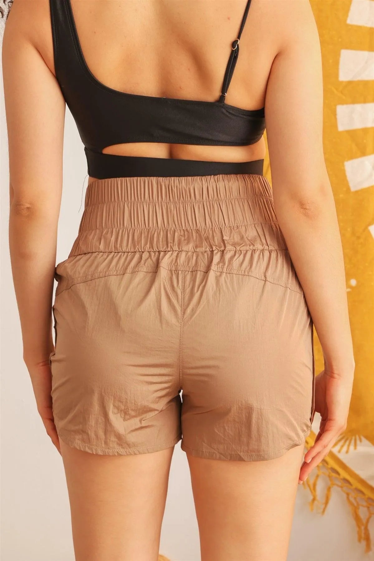 🖤 Item Features: Mocha, solid color, high waisted, two pockets, elasticized waistband, light weight, stretchy, unlined, casual, cool, sporty, trendy, comfy