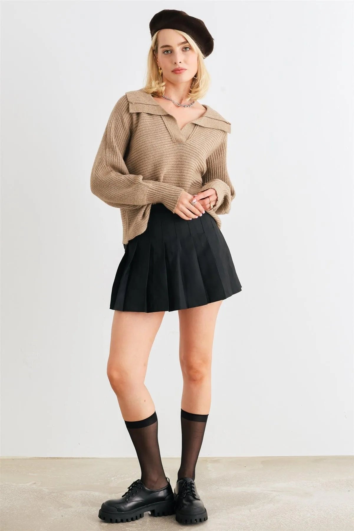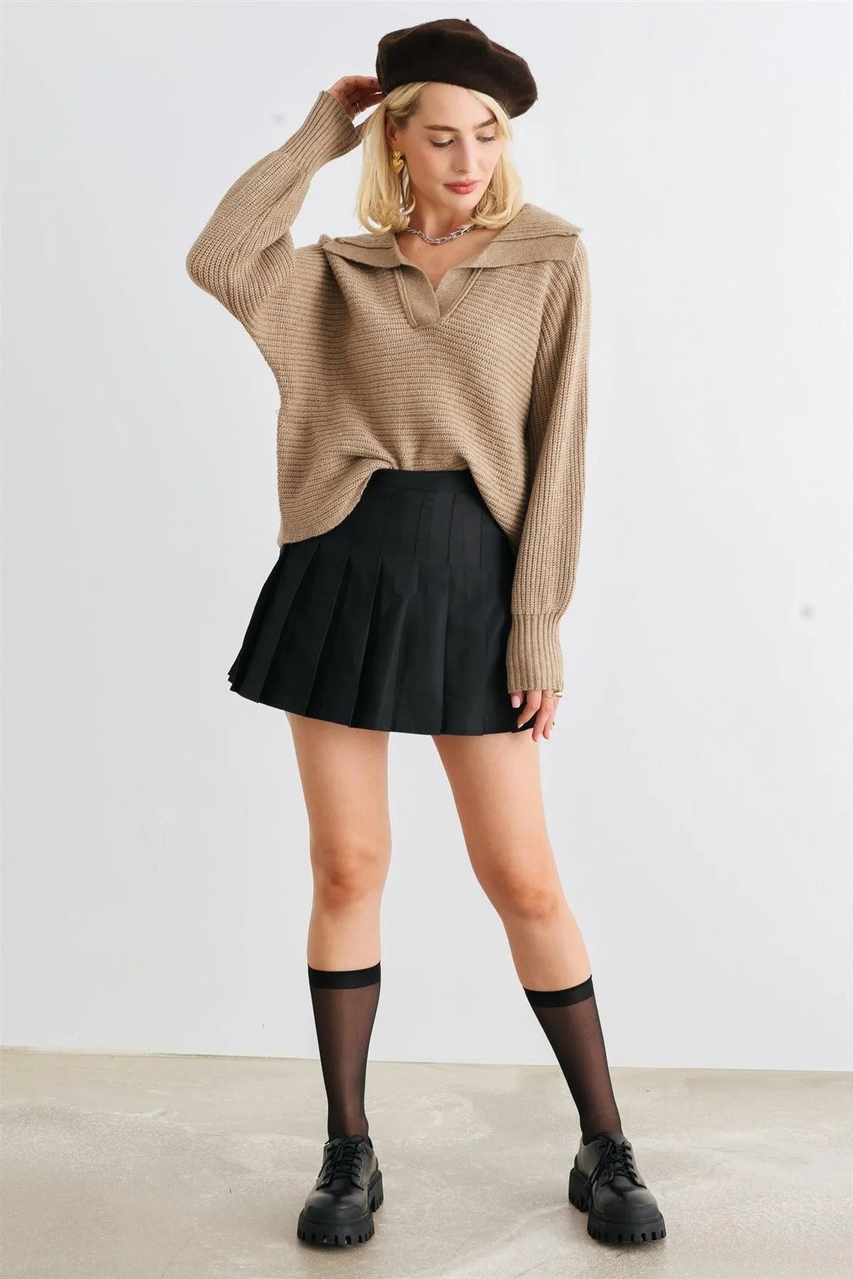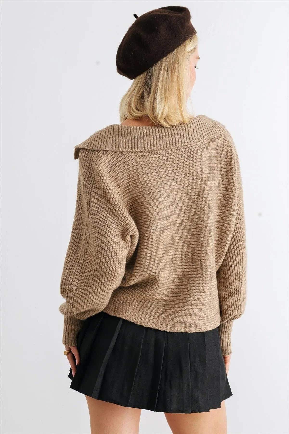 🖤 Item Features: Mocha, knit, collared neckline, long sleeves, cropped length, not see through, non-stretchy, unlined, comfy, warm, cozy, soft to touch, casual, fall/winter collection