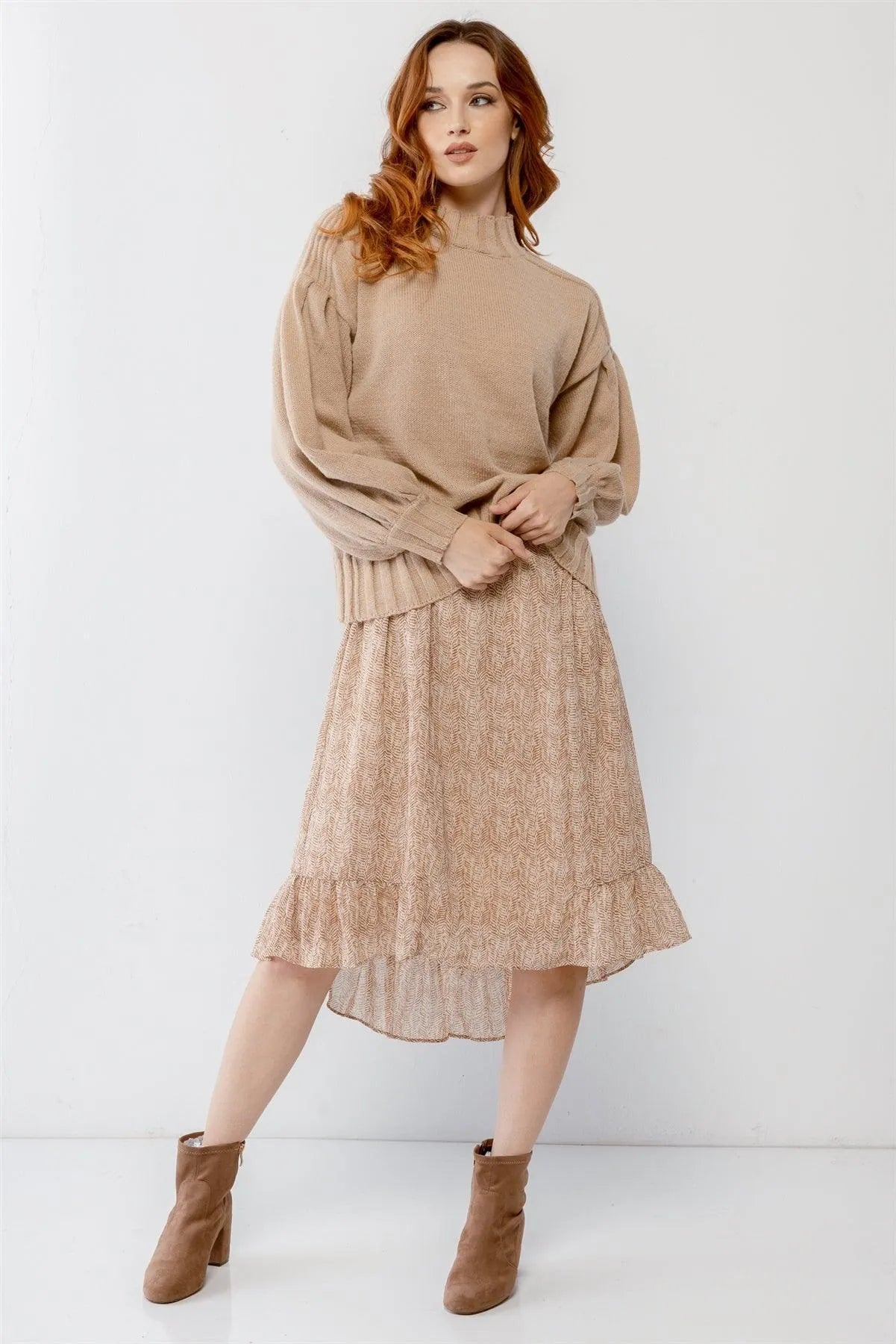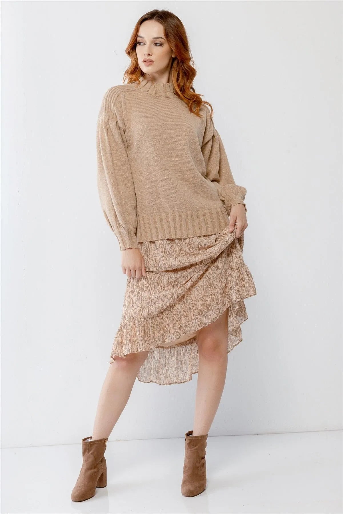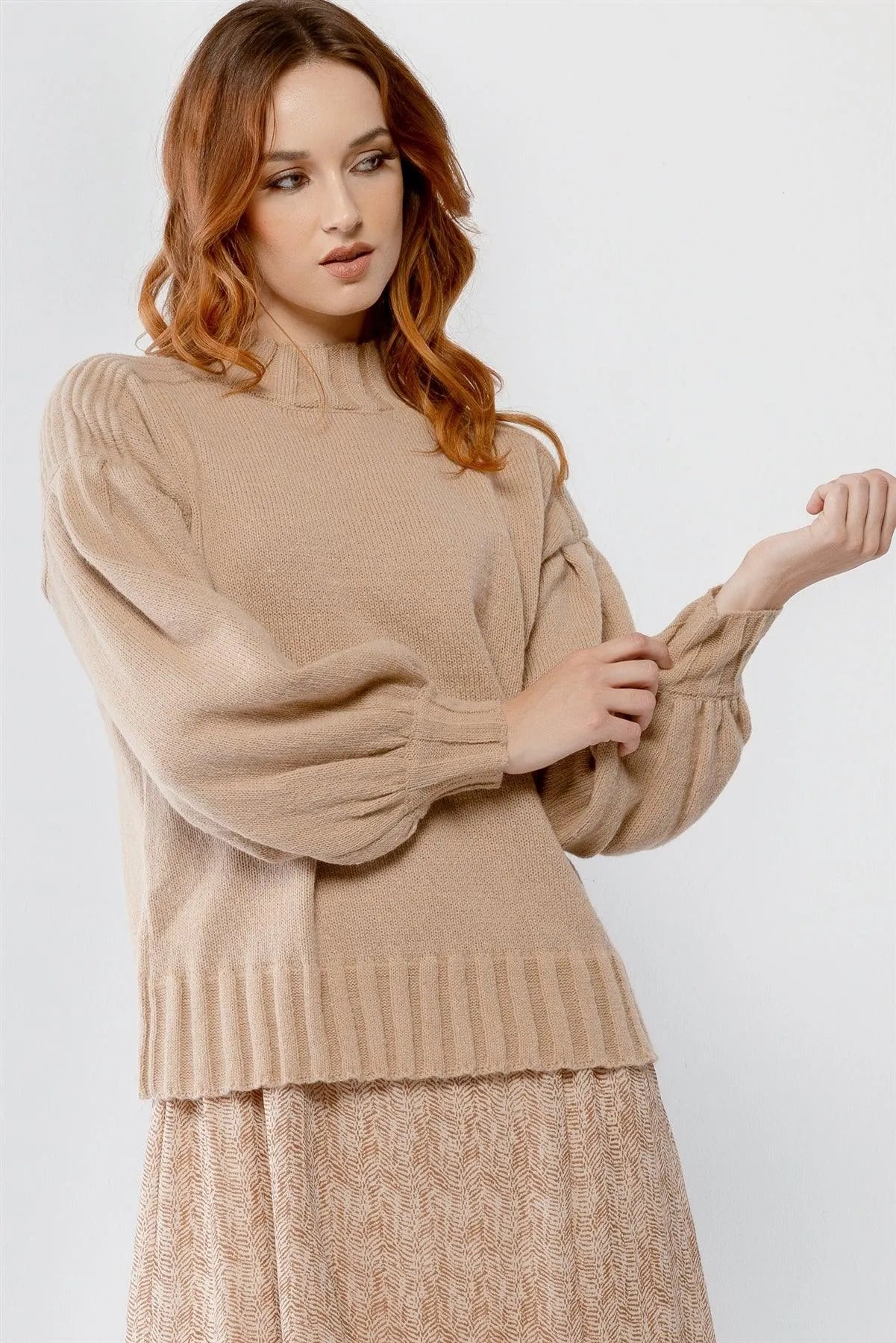 🖤 Item Features: Mocha, knit, solid color, crew neckline, dropped shoulders, puff balloon long sleeves, cuffed hem, relaxed fit, unlined, non-stretchy, not see through, casual, cute, comfy, basic, everyday look, dark academia style.