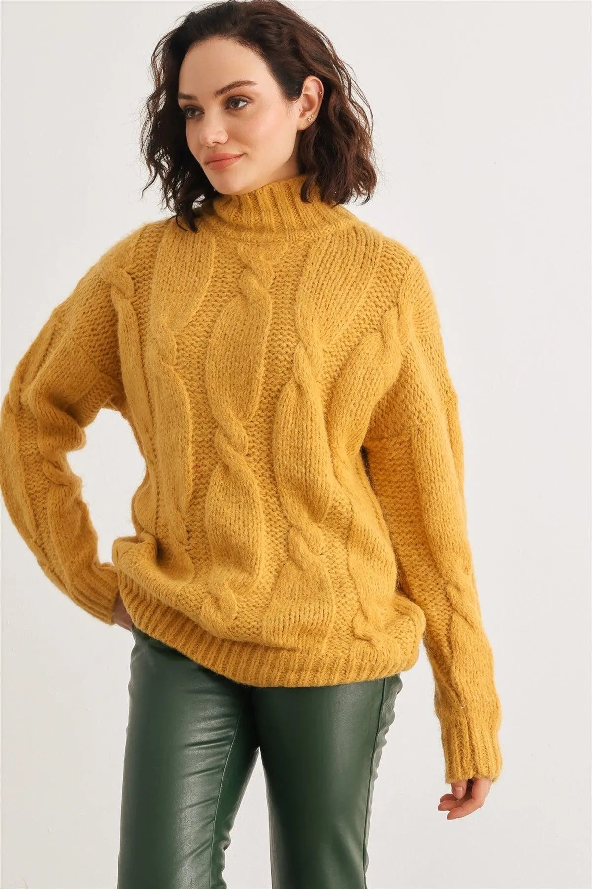 Mustard Cable Knit Turtle Neck Long Sleeve Sweater /1-1-1