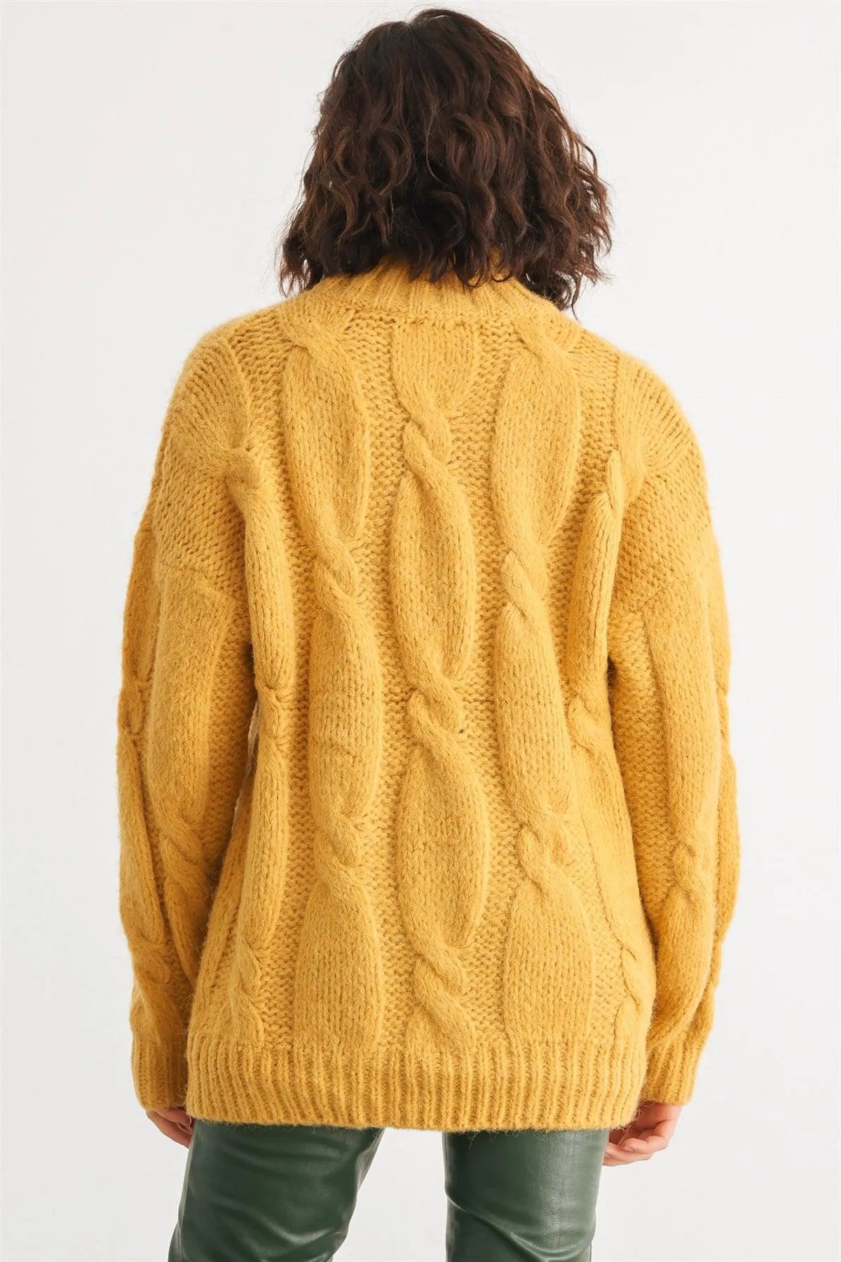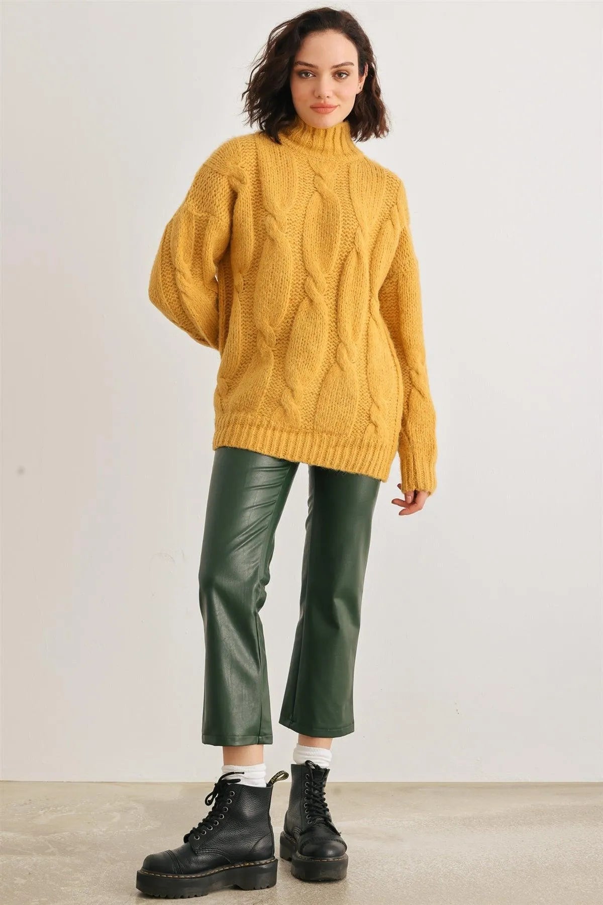 Mustard Cable Knit Turtle Neck Long Sleeve Sweater /2-2-2