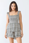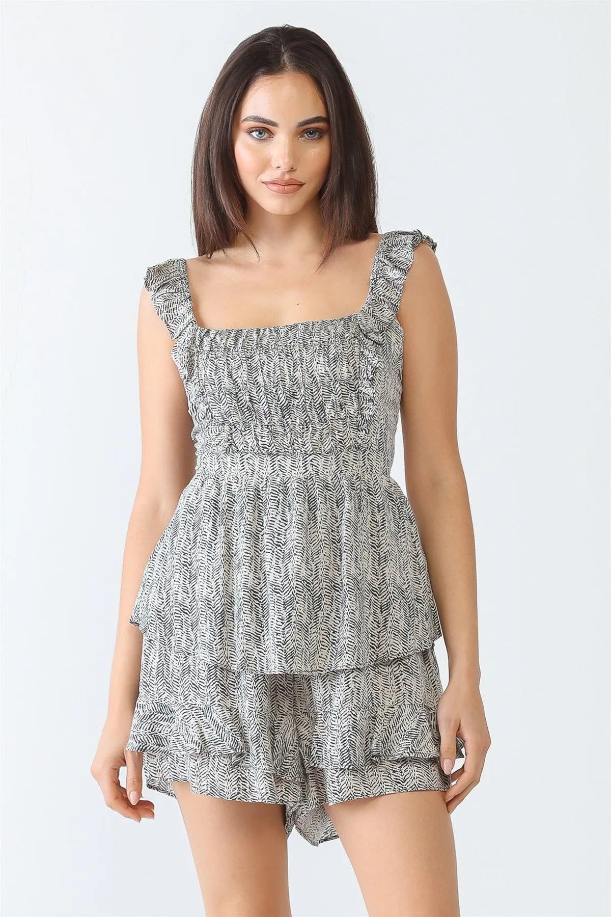 🖤 Item Features: Navy, printed, sleeveless, ruffle, tired, elasticized waist, self-tie back, semi-stretchy, lined, non-sheer, casual, cute, cool, must-have