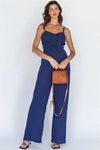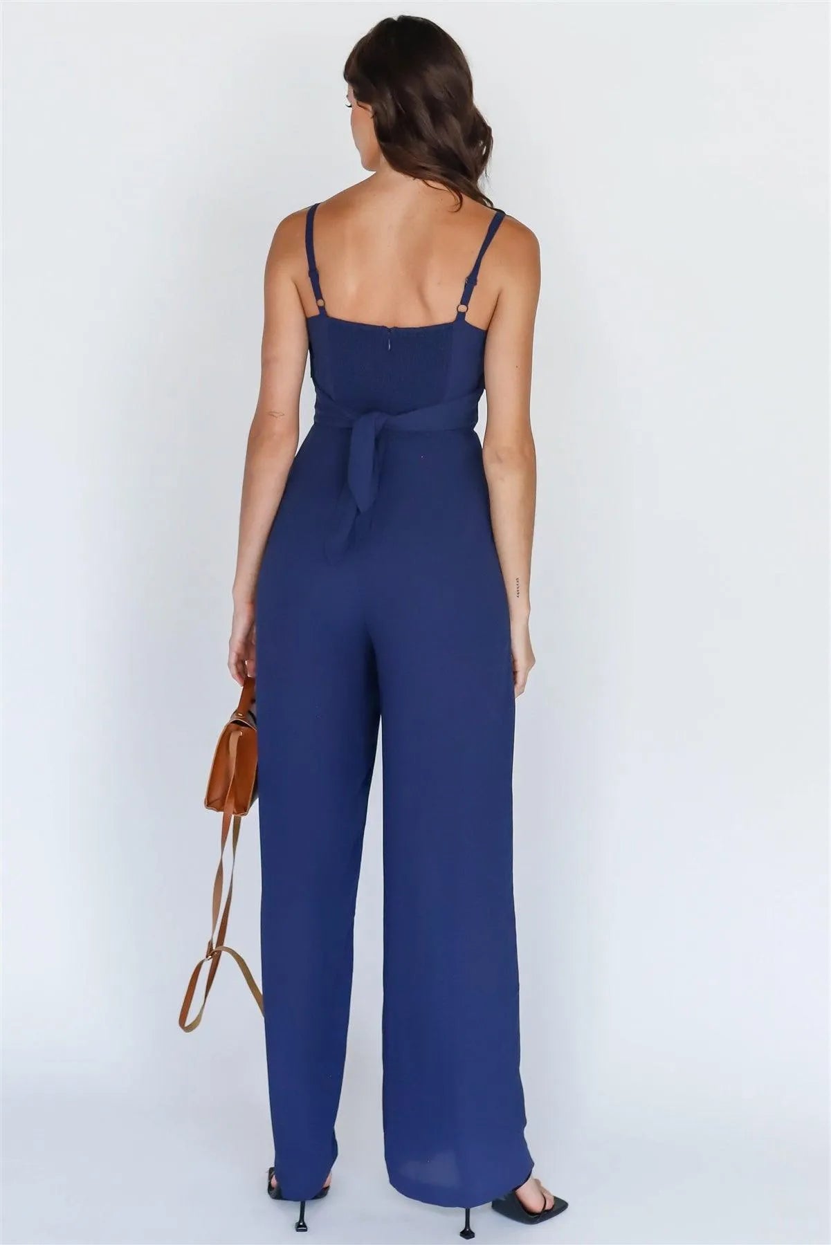 Navy Self-Tie Detail Smocked Back Sleeveless Jumpsuit /1-2-2-1