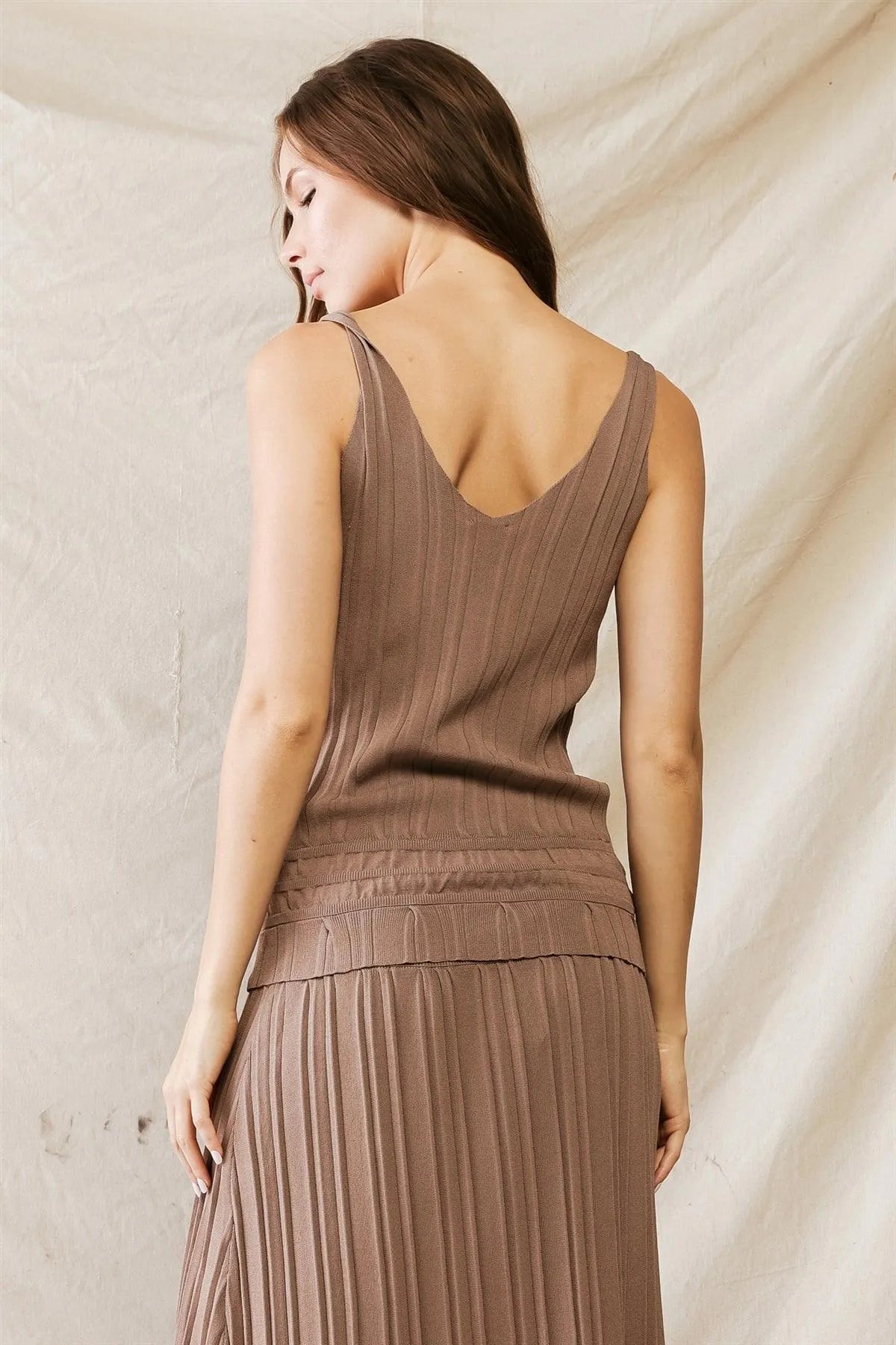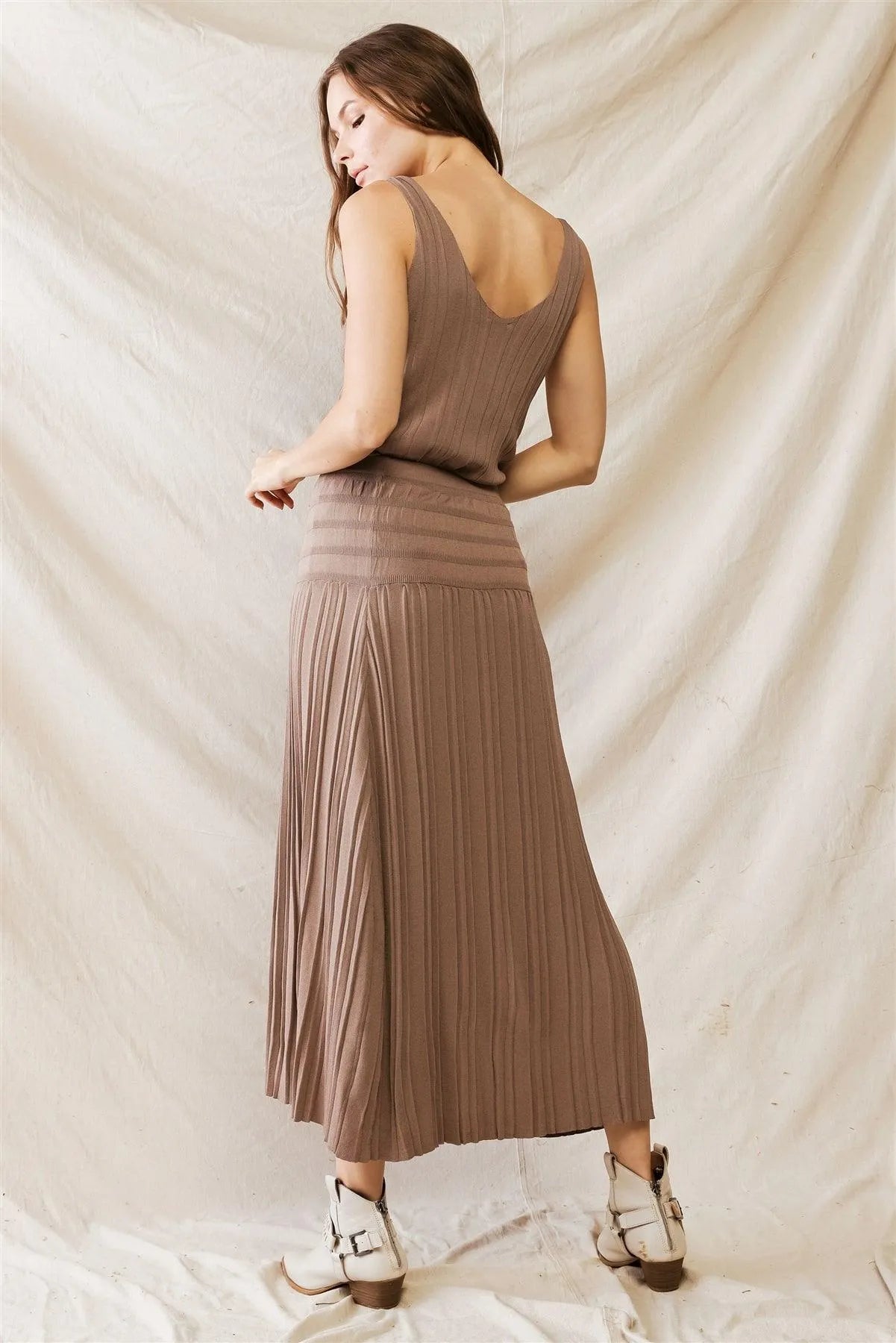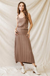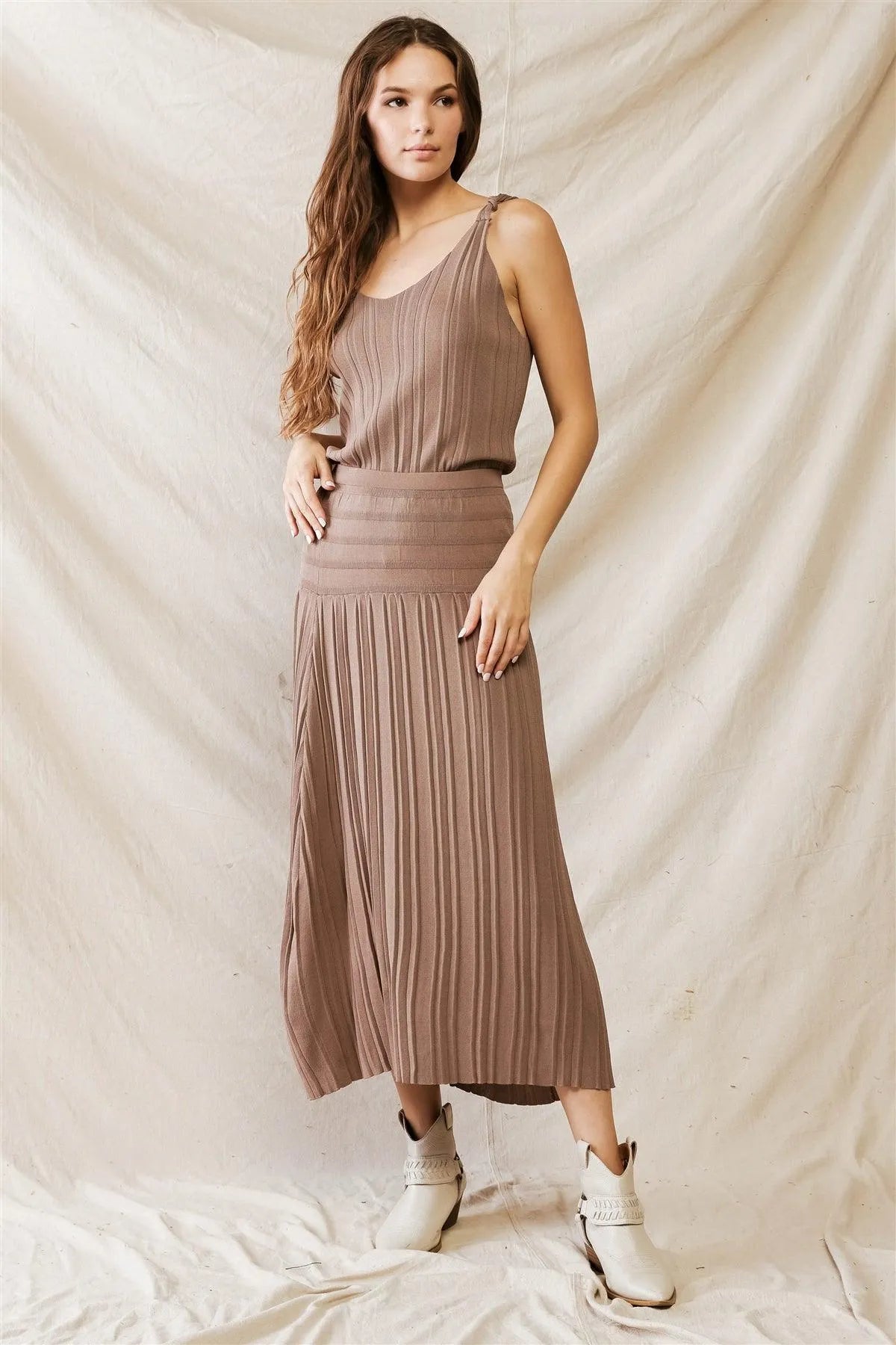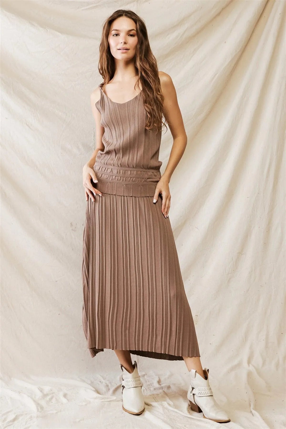Nude Plaid Viscose High Waist Midi Skirt & Sleeveless Top Set /2-2-1